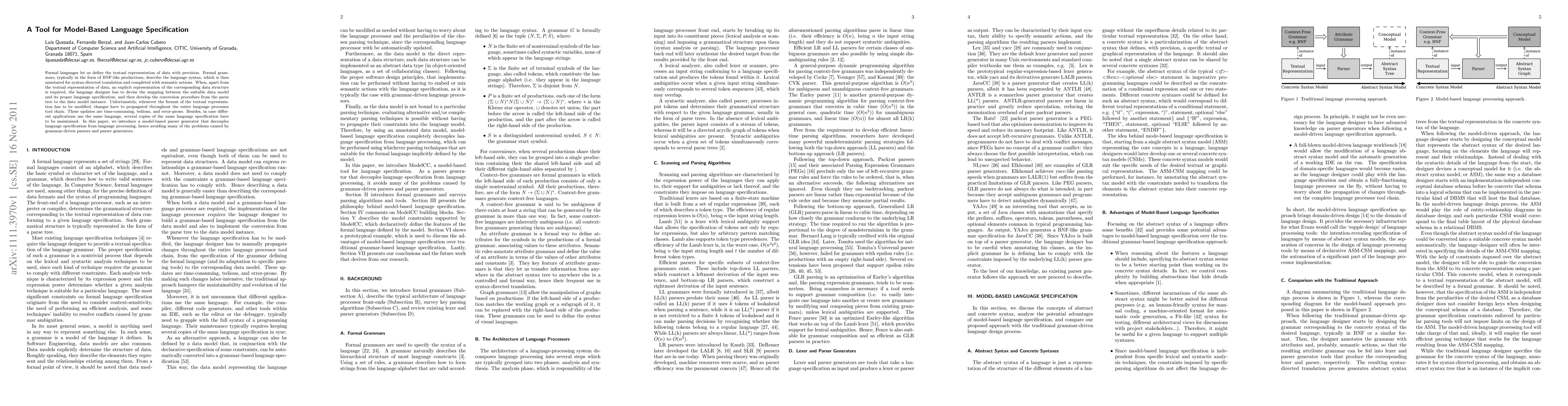 This paper introduces a model-based parser generator that separates language specification from language processing, thereby reducing the need for tedious and error-prone updates when modifying the textual representation format and eliminating the maintenance of multiple copies of the same language specification.