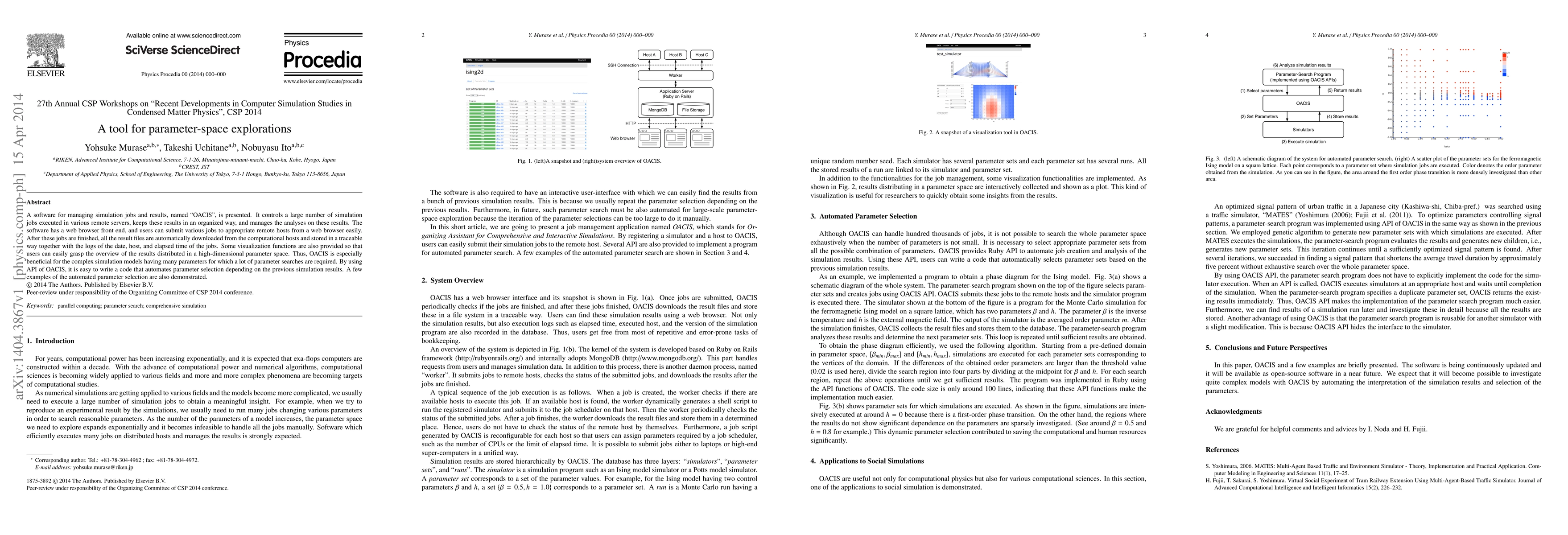 A software called OACIS facilitates parameter-space exploration for complex simulations with many parameters, automating job submission, result storage, and analysis visualization.