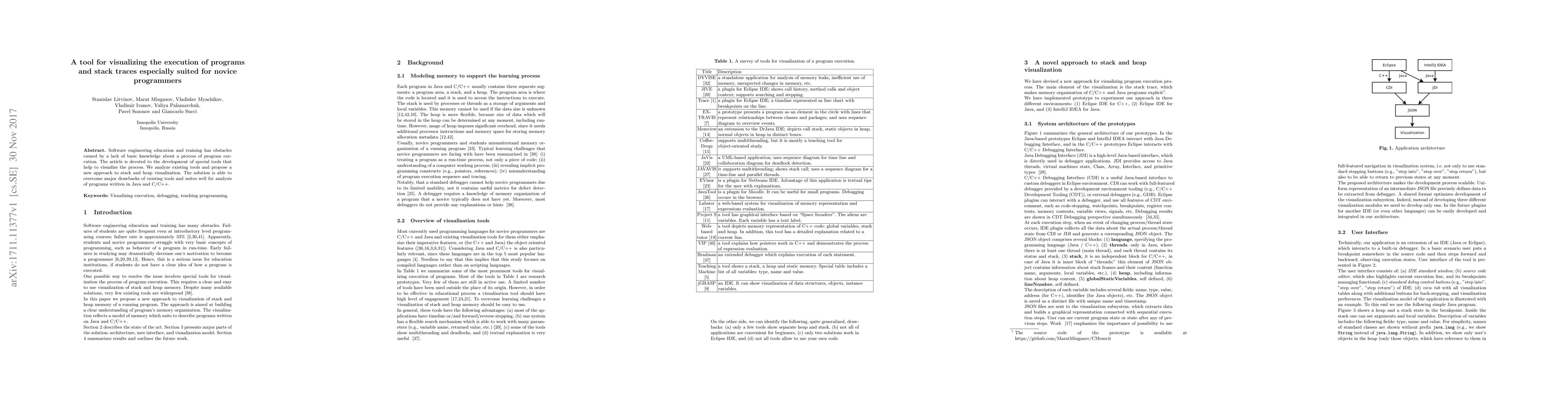Software engineering education and training have obstacles caused by a lack of basic knowledge about a process of program execution. The article is devoted to the development of special tools that help to visualize the process. We analyze existing tools and propose a new approach to stack and heap visualization. The solution is able to overcome major drawbacks of existing tools and suites well for analysis of programs written in Java and C/C++.