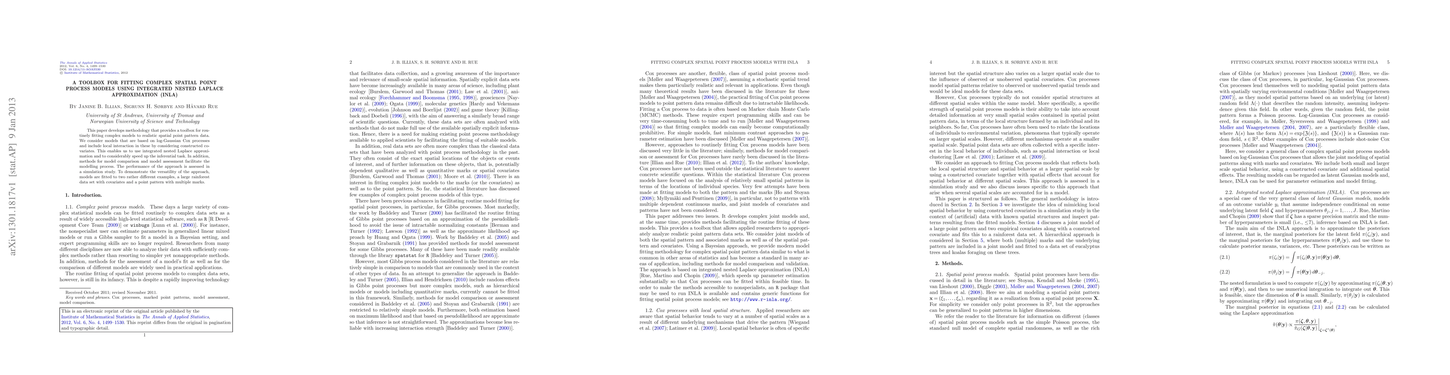 This paper introduces a toolbox for fitting complex spatial point process models using integrated nested Laplace approximation (INLA), enabling efficient inference and model comparison, demonstrated through simulations and real-world rainforest and marked point pattern data.