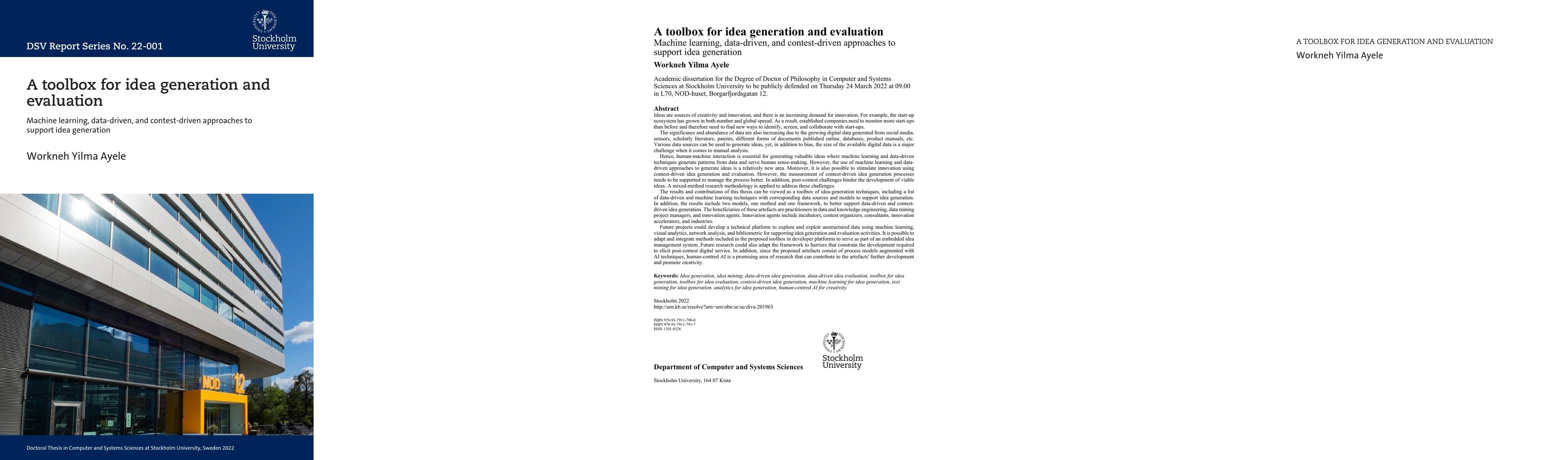 This paper presents a toolbox of idea-generation techniques, combining machine learning, data-driven, and contest-driven approaches to support innovation. The proposed methods aim to leverage vast digital data sources to generate valuable ideas, emphasizing the importance of human-machine interaction in the process.