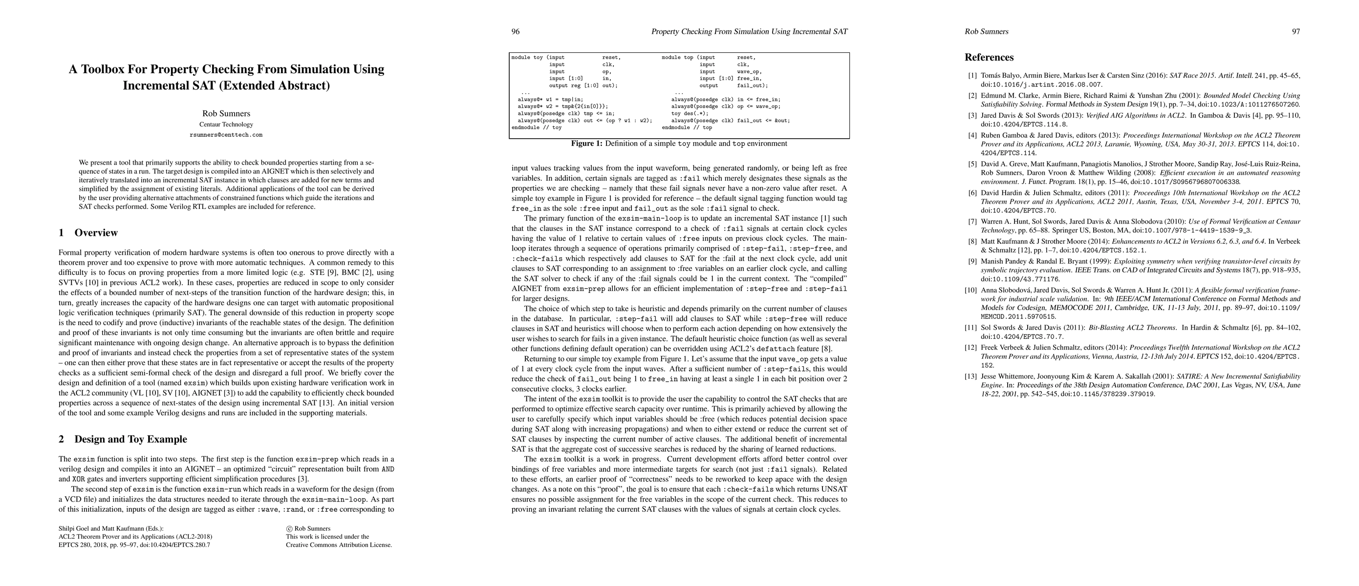 This paper introduces a tool for property checking from simulation using incremental SAT, enabling bounded property verification from a sequence of states in a run by translating the design into an AIGNET and iteratively refining SAT instances. The tool allows for user-defined guided iterations and includes Verilog RTL examples for illustration.