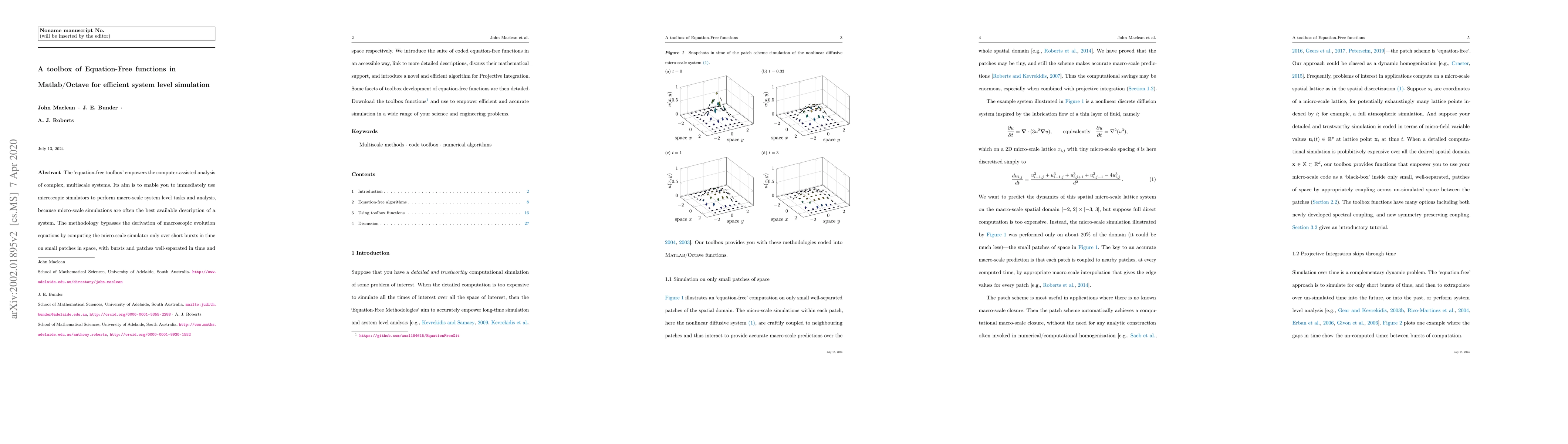 This paper introduces an "equation-free toolbox" in Matlab/Octave for efficient system-level simulations, enabling the use of microscopic simulators for macro-scale analysis without deriving macroscopic equations. The toolbox employs a novel algorithm for Projective Integration and is available for download to facilitate accurate simulations across various scientific and engineering domains.
