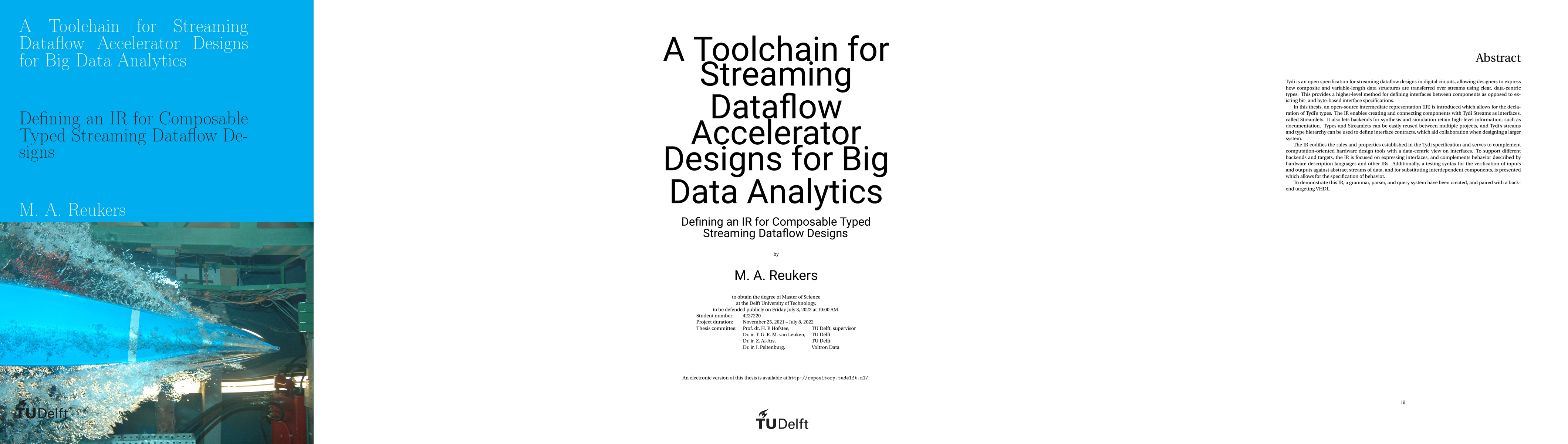 Tydi is an open specification for streaming dataflow designs in digital circuits, allowing designers to express how composite and variable-length data structures are transferred over streams using clear, data-centric types. This provides a higher-level method for defining interfaces between components as opposed to existing bit- and byte-based interface specifications. In this thesis, an open-source intermediate representation (IR) is introduced which allows for the declaration of Tydi's types. The IR enables creating and connecting components with Tydi Streams as interfaces, called Streamlets. It also lets backends for synthesis and simulation retain high-level information, such as documentation. Types and Streamlets can be easily reused between multiple projects, and Tydi's streams and type hierarchy can be used to define interface contracts, which aid collaboration when designing a larger system. The IR codifies the rules and properties established in the Tydi specification and serves to complement computation-oriented hardware design tools with a data-centric view on interfaces. To support different backends and targets, the IR is focused on expressing interfaces, and complements behavior described by hardware description languages and other IRs. Additionally, a testing syntax for the verification of inputs and outputs against abstract streams of data, and for substituting interdependent components, is presented which allows for the specification of behavior. To demonstrate this IR, a grammar, parser, and query system have been created, and paired with a backend targeting VHDL.