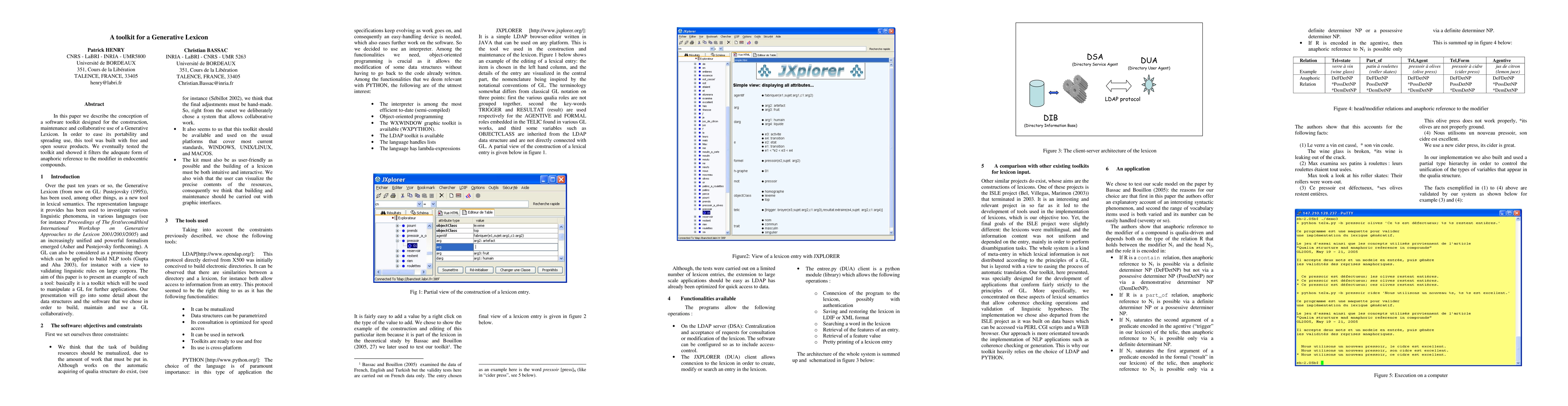 A software toolkit has been developed for constructing and using a Generative Lexicon, which filters anaphoric references in endocentric compounds with high accuracy. The open-source tool is designed to be portable and collaborative.