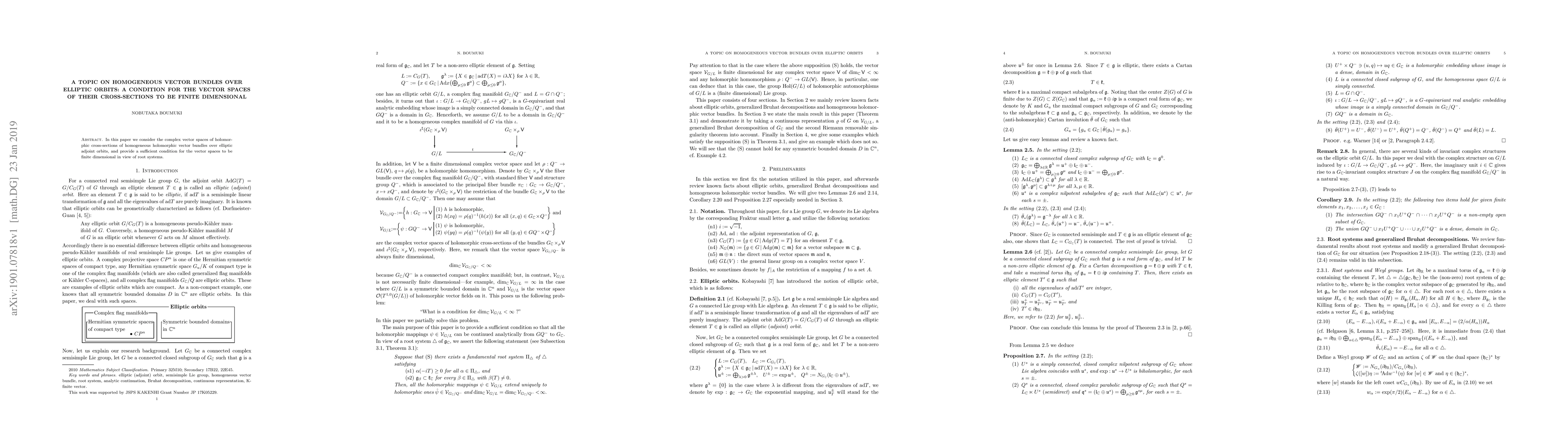 This paper investigates the complex vector spaces of holomorphic cross-sections for homogeneous holomorphic vector bundles over elliptic adjoint orbits, providing a sufficient condition based on root systems for these spaces to be finite dimensional.