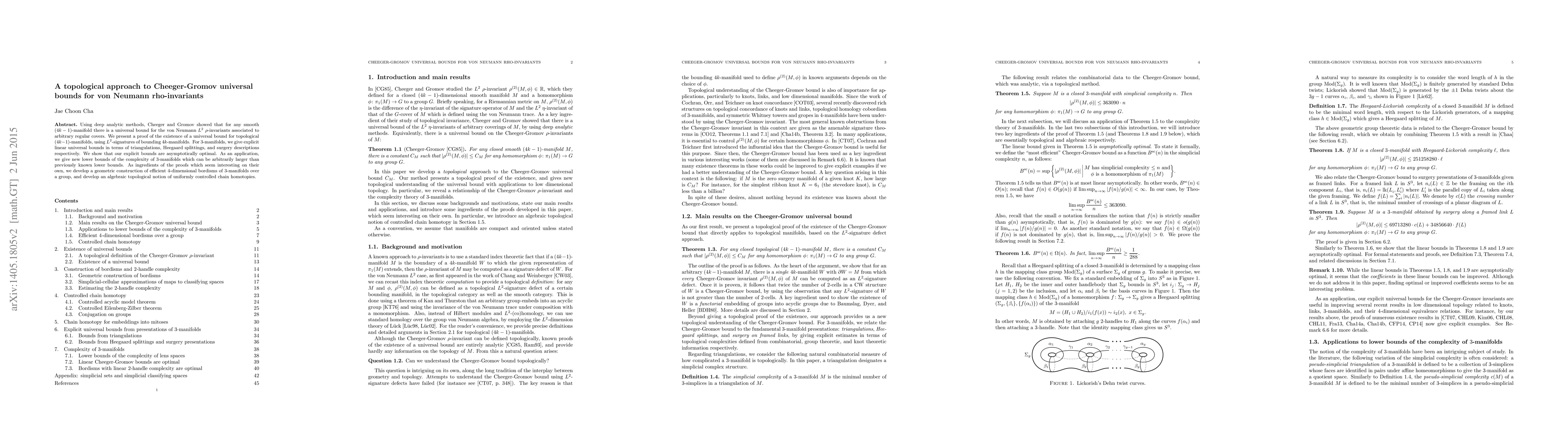 Using deep analytic methods, Cheeger and Gromov showed that for any smooth (4k-1)-manifold there is a universal bound for the von Neumann $L^2$ $\rho$-invariants associated to arbitrary regular covers. We present a proof of the existence of a universal bound for topological (4k-1)-manifolds, using $L^2$-signatures of bounding 4k-manifolds. For 3-manifolds, we give explicit linear universal bounds in terms of triangulations, Heegaard splittings, and surgery descriptions respectively. We show that our explicit bounds are asymptotically optimal. As an application, we give new lower bounds of the complexity of 3-manifolds which can be arbitrarily larger than previously known lower bounds. As ingredients of the proofs which seem interesting on their own, we develop a geometric construction of efficient 4-dimensional bordisms of 3-manifolds over a group, and develop an algebraic topological notion of uniformly controlled chain homotopies.