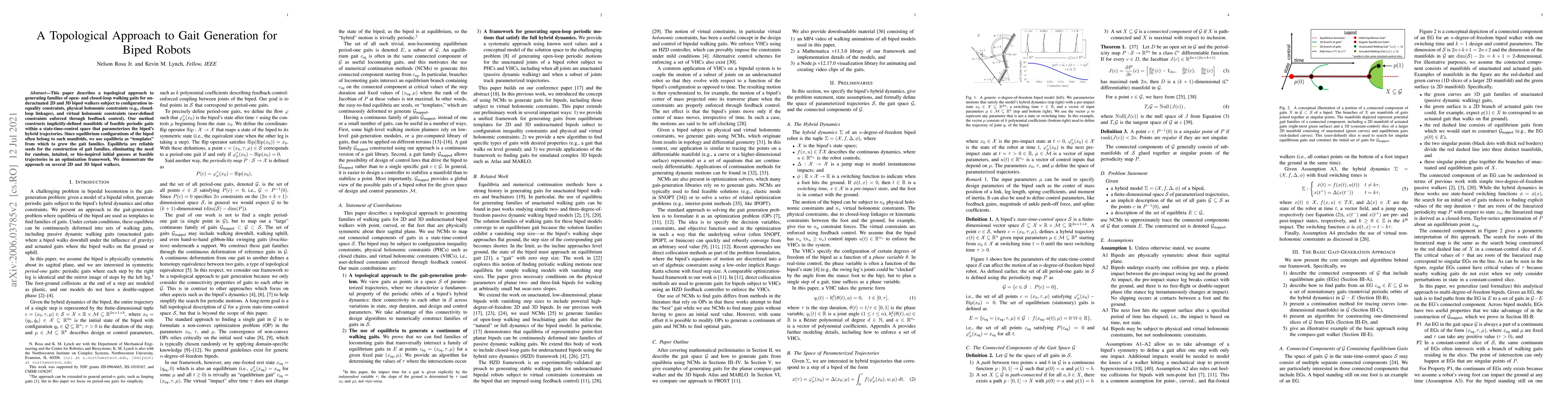 This paper presents a topological approach for generating gaits for biped robots by defining implicitly-defined manifolds of feasible periodic gaits, using equilibria as reliable templates. The method eliminates the need for random initial guesses, demonstrated on both 2D and 3D biped walkers.
