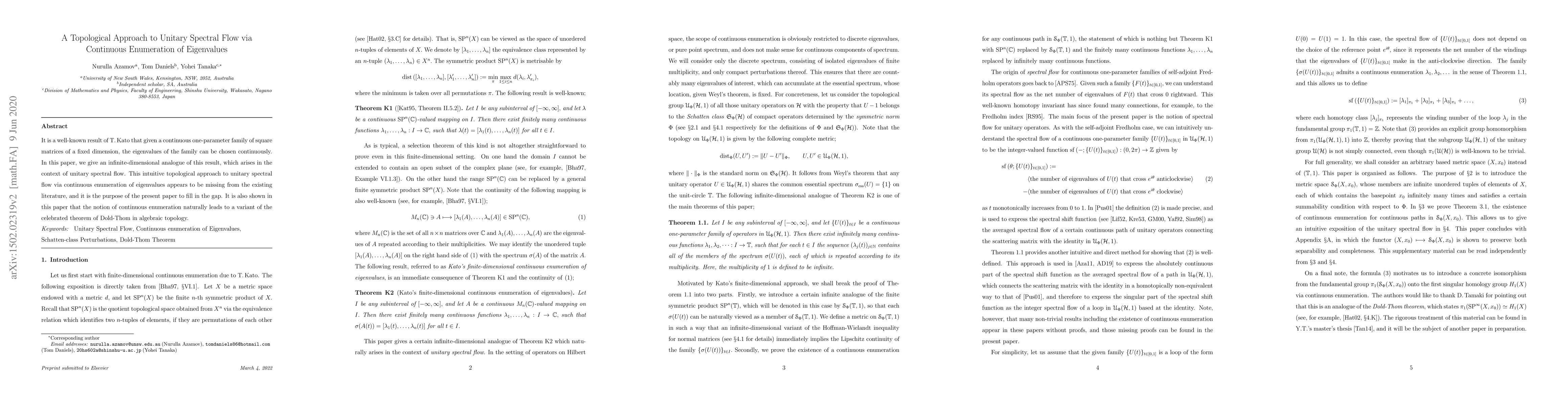 Researchers develop a new approach to unitary spectral flow by using a topological method to continuously enumerate eigenvalues along a path, filling a gap in the literature with an infinite-dimensional analogue of Kato's result.