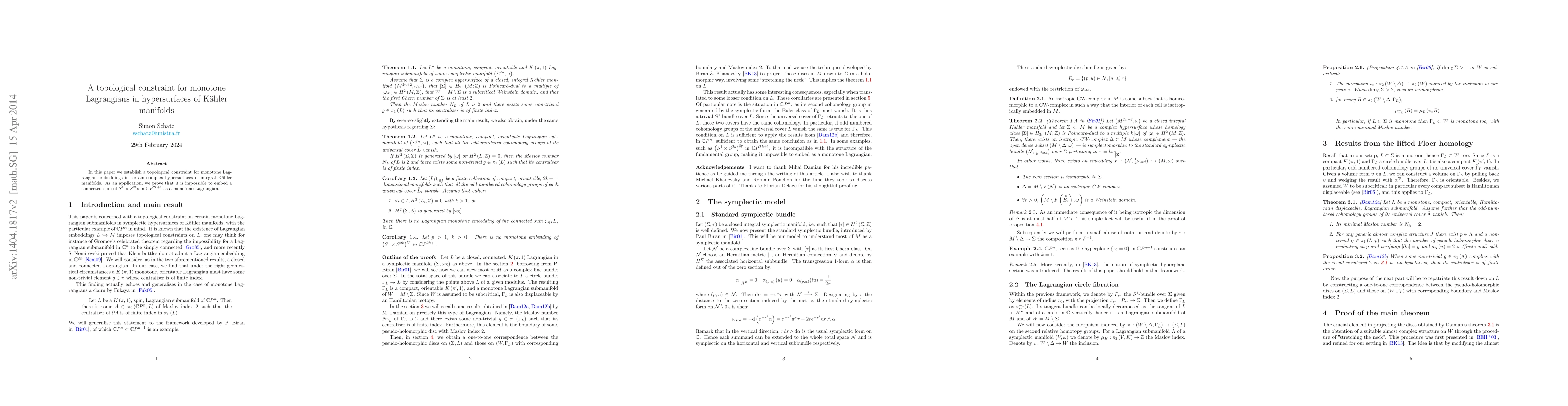 Researchers establish a topological constraint for embedding monotone Lagrangian submanifolds in certain complex hypersurfaces of integral K"ahler manifolds, proving it's impossible to embed connected sums of $S^{1} imes S^{2k}$s in $ ilde{C}P^{2k+1}$ as a monotone Lagrangian.