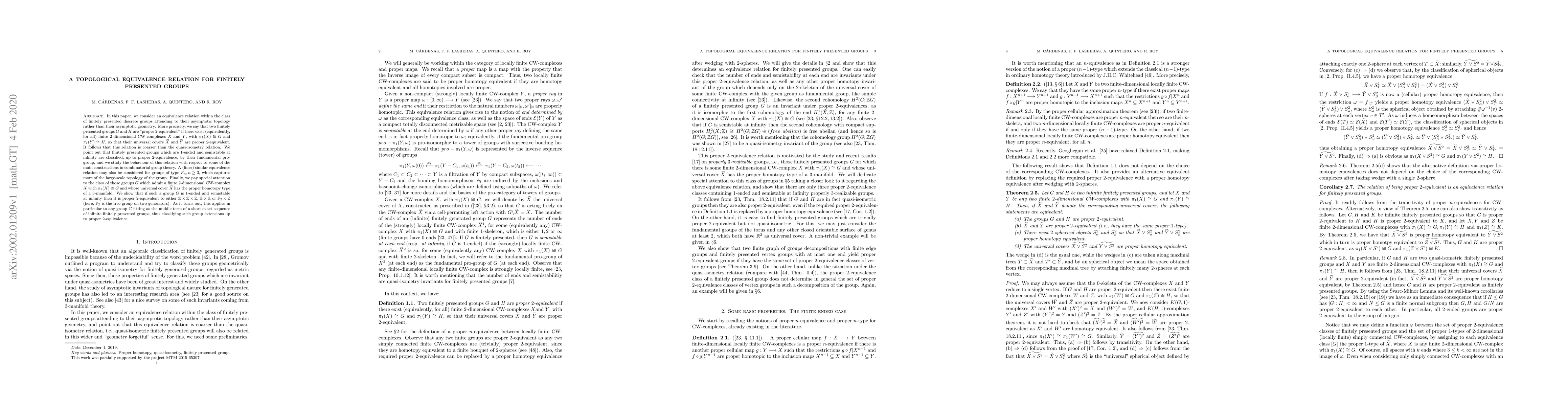 Researchers developed a new equivalence relation for finitely presented groups based on their asymptotic topology, which can classify certain groups up to proper 2-equivalence, offering insights into large-scale group structure and classification of infinite group extensions.