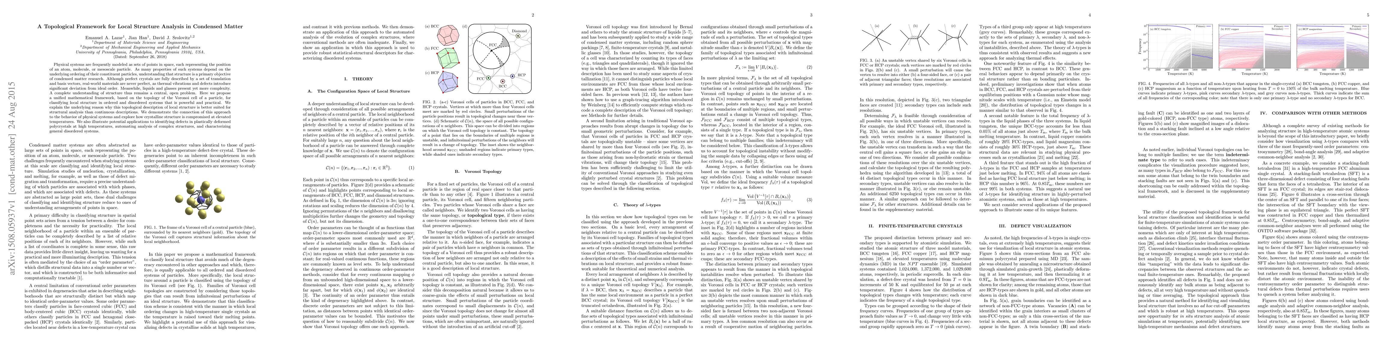Physical systems are frequently modeled as sets of points in space, each representing the position of an atom, molecule, or mesoscale particle. As many properties of such systems depend on the underlying ordering of their constituent particles, understanding that structure is a primary objective of condensed matter research. Although perfect crystals are fully described by a set of translation and basis vectors, real-world materials are never perfect, as thermal vibrations and defects introduce significant deviation from ideal order. Meanwhile, liquids and glasses present yet more complexity. A complete understanding of structure thus remains a central, open problem. Here we propose a unified mathematical framework, based on the topology of the Voronoi cell of a particle, for classifying local structure in ordered and disordered systems that is powerful and practical. We explain the underlying reason why this topological description of local structure is better suited for structural analysis than continuous descriptions. We demonstrate the connection of this approach to the behavior of physical systems and explore how crystalline structure is compromised at elevated temperatures. We also illustrate potential applications to identifying defects in plastically deformed polycrystals at high temperatures, automating analysis of complex structures, and characterizing general disordered systems.