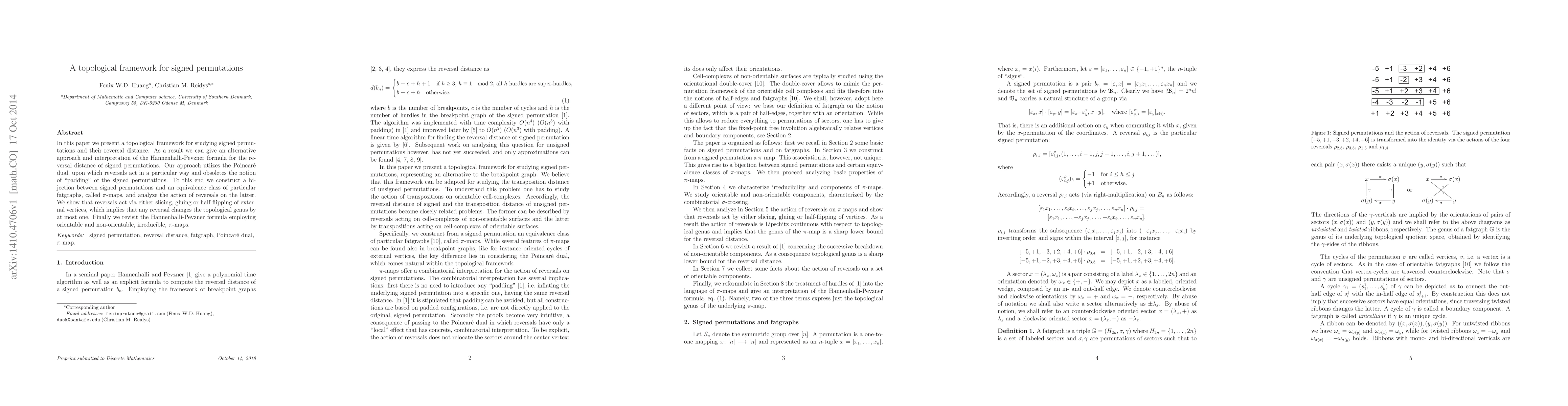 In this paper we present a topological framework for studying signed permutations and their reversal distance. As a result we can give an alternative approach and interpretation of the Hannenhalli-Pevzner formula for the reversal distance of signed permutations. Our approach utlizes the Poincar\'e dual, upon which reversals act in a particular way and obsoletes the notion of "padding" of the signed permutations. To this end we construct a bijection between signed permutations and an equivalence class of particular fatgraphs, called $\pi$-maps, and analyze the action of reversals on the latter. We show that reversals act via either slicing, gluing or half-flipping of external vertices, which implies that any reversal changes the topological genus by at most one. Finally we revisit the Hannenhalli-Pevzner formula employing orientable and non-orientable, irreducible, $\pi$-maps.