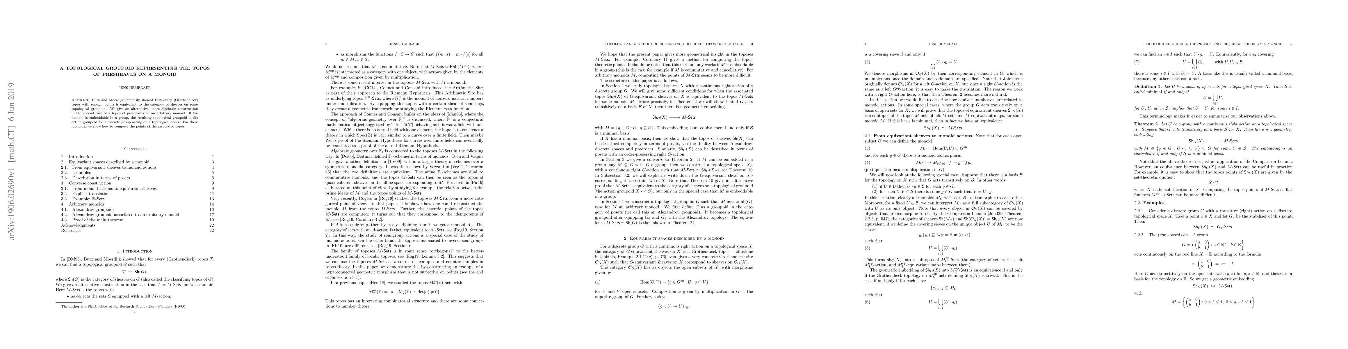 Butz and Moerdijk famously showed that every (Grothendieck) topos with enough points is equivalent to the category of sheaves on some topological groupoid. We give an alternative, more algebraic construction in the special case of a topos of presheaves on an arbitrary monoid. If the monoid is embeddable in a group, the resulting topological groupoid is the action groupoid for a discrete group acting on a topological space. For these monoids, we show how to compute the points of the associated topos.