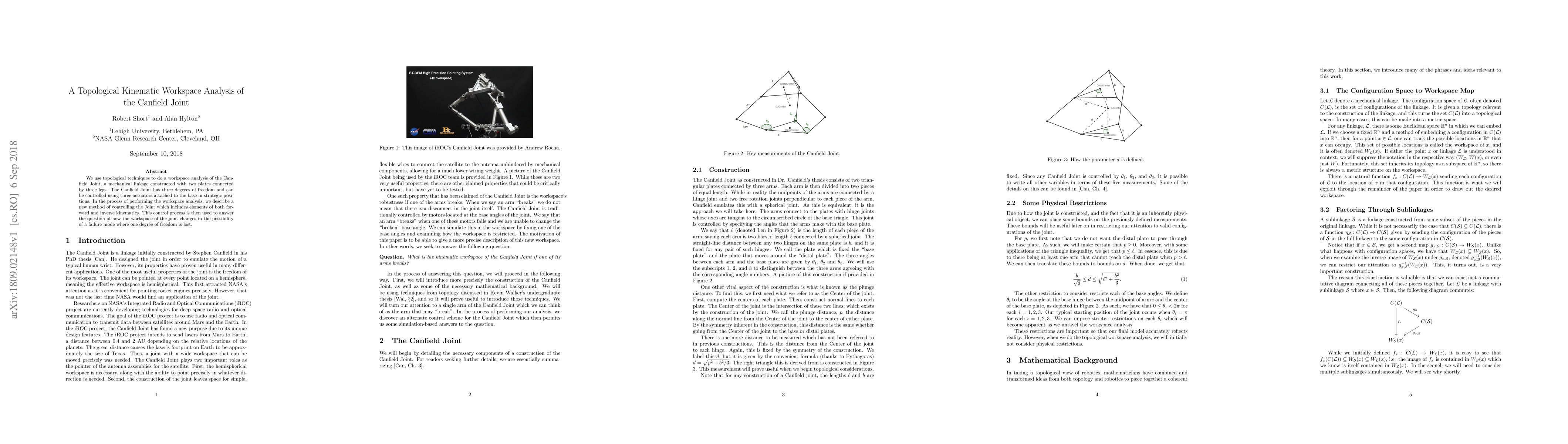 Researchers analyzed the Canfield Joint using topological techniques to study its workspace and develop a new control method that combines forward and inverse kinematics. This analysis sheds light on how the joint's workspace changes in case of potential failure modes.