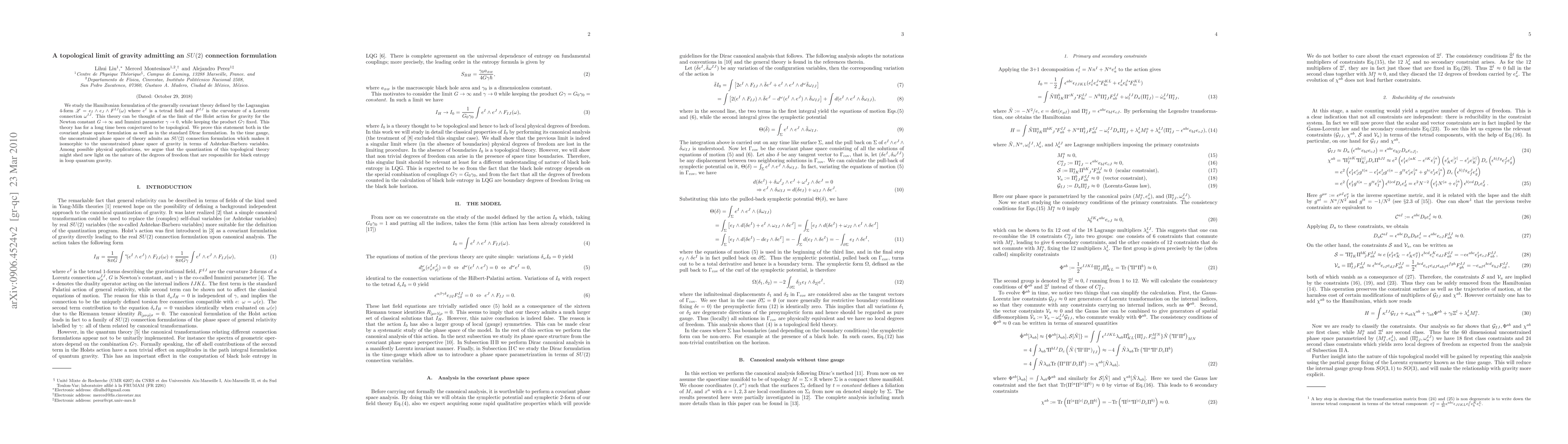 This research proves a generally covariant gravity theory, derived from the Holst action under specific limit conditions, is topological. It also reveals an SU(2) connection formulation in the time gauge, potentially offering insights into black hole entropy in loop quantum gravity quantization.