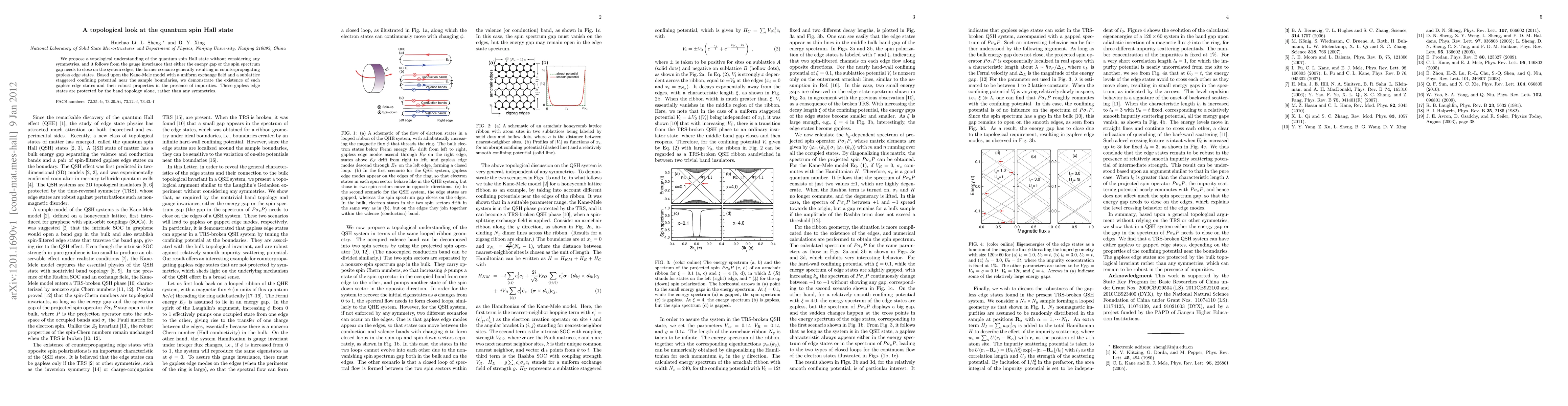 We propose a topological understanding of the quantum spin Hall state without considering any symmetries, and it follows from the gauge invariance that either the energy gap or the spin spectrum gap needs to close on the system edges, the former scenario generally resulting in counterpropagating gapless edge states. Based upon the Kane-Mele model with a uniform exchange field and a sublattice staggered confining potential near the sample boundaries, we demonstrate the existence of such gapless edge states and their robust properties in the presence of impurities. These gapless edge states are protected by the band topology alone, rather than any symmetries.