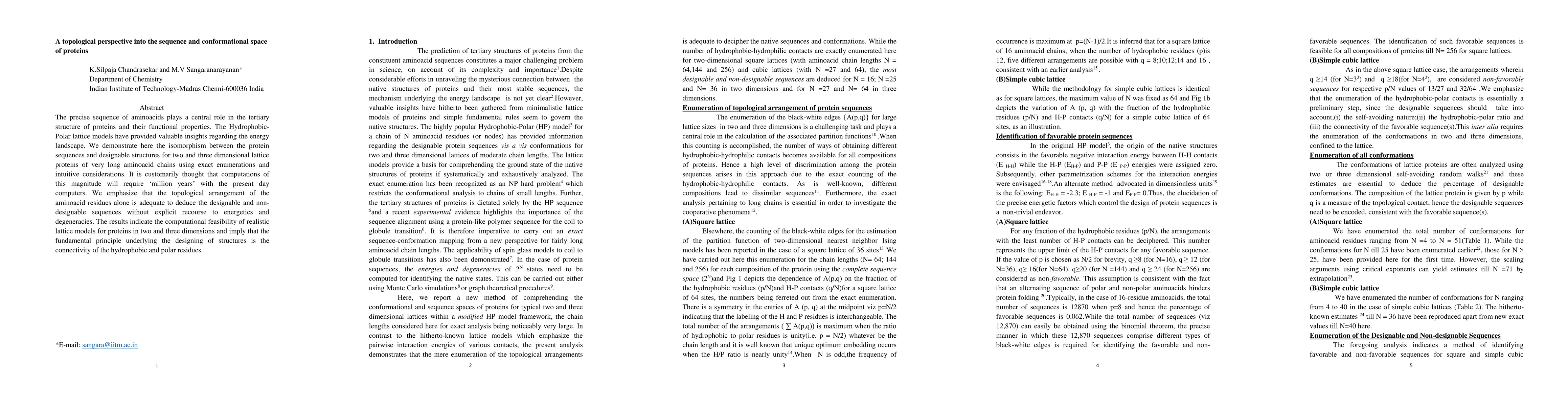 The precise sequence of aminoacids plays a central role in the tertiary structure of proteins and their functional properties. The Hydrophobic-Polar lattice models have provided valuable insights regarding the energy landscape. We demonstrate here the isomorphism between the protein sequences and designable structures for two and three dimensional lattice proteins of very long aminoacid chains using exact enumerations and intuitive considerations.We emphasize that the topological arrangement of the aminoacid residues alone is adequate to deduce the designable and non-designable sequences without explicit recourse to energetics and degeneracies. The results indicate the computational feasibility of realistic lattice models for proteins in two and three dimensions and imply that the fundamental principle underlying the designing of structures is the connectivity of the hydrophobic and polar residues.