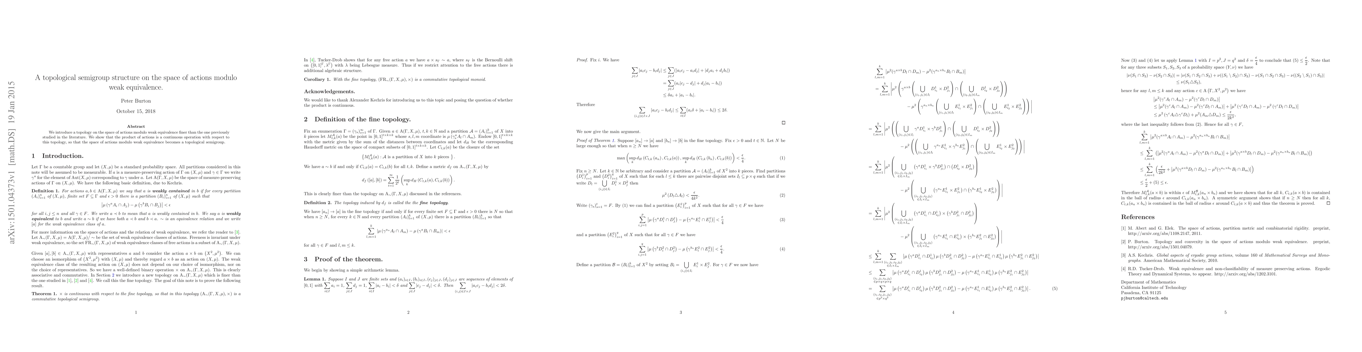 Researchers introduce a new topology on actions modulo weak equivalence, enabling the space to form a topological semigroup with continuous product operations.