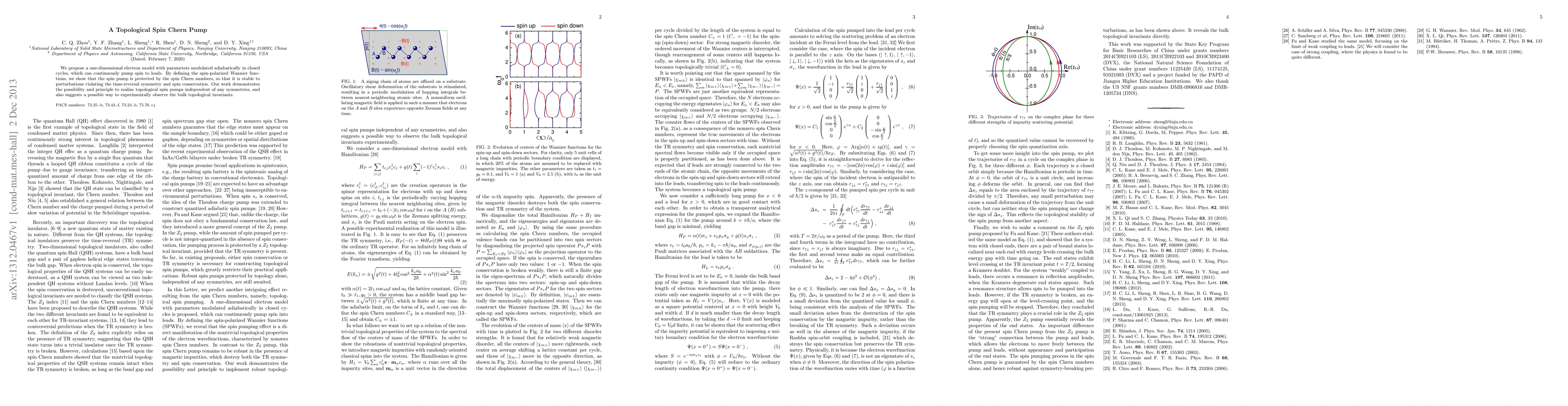 This paper proposes a one-dimensional electron model that adiabatically modulates parameters to continuously pump spin to leads, protected by spin Chern numbers. It demonstrates the feasibility of topological spin pumps without relying on symmetries, and suggests a method for observing bulk topological invariants experimentally.
