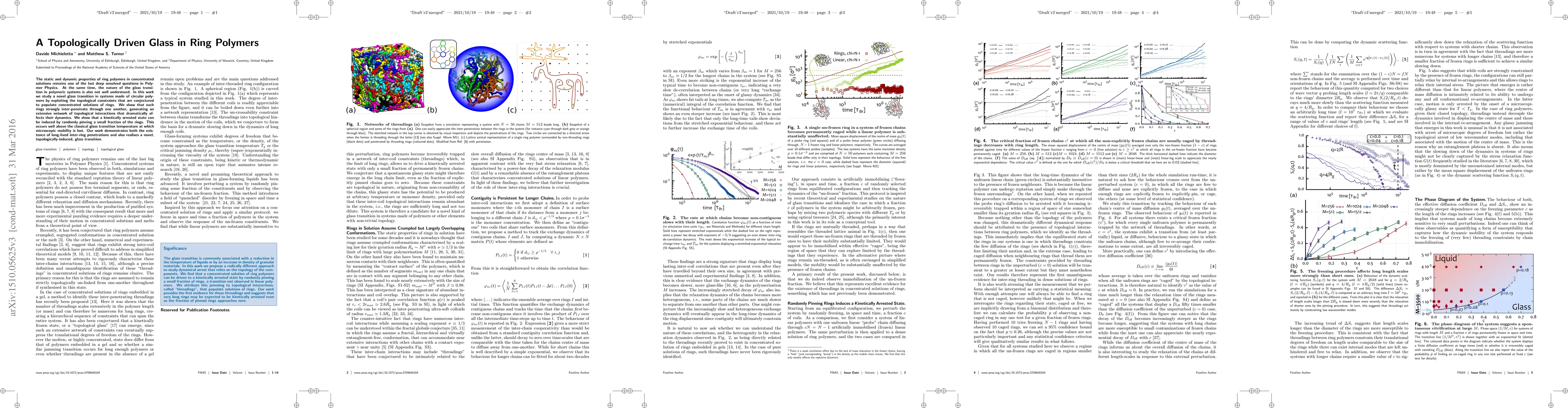 Researchers discovered a new glass transition in ring polymers due to topological constraints, which significantly affects their dynamics, occurring above the classical glass transition temperature.
