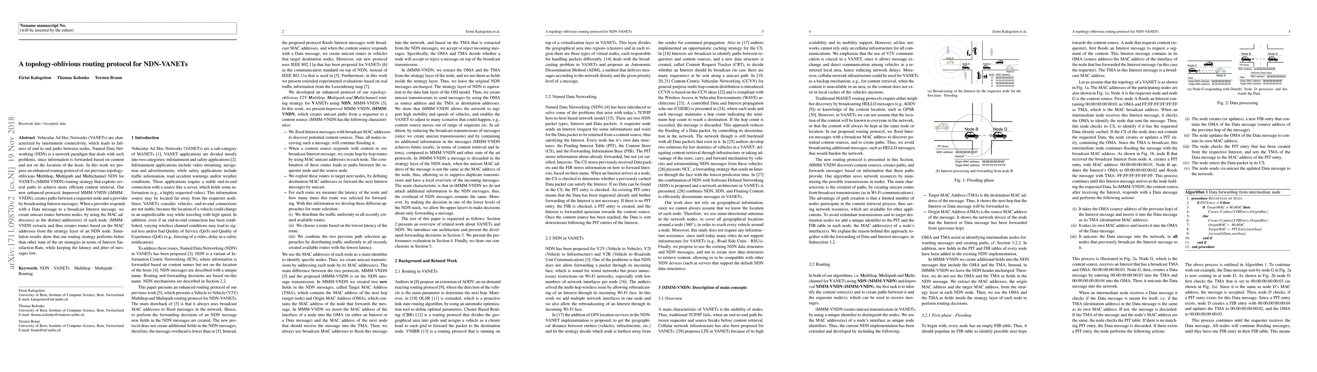 This paper proposes an enhanced routing protocol, iMMM-VNDN, for Named Data Networking in Vehicular Ad Hoc Networks, improving upon previous strategies by using MAC addresses for efficient content retrieval and achieving higher Interest Satisfaction Rate with lower latency and jitter compared to other state-of-the-art methods.