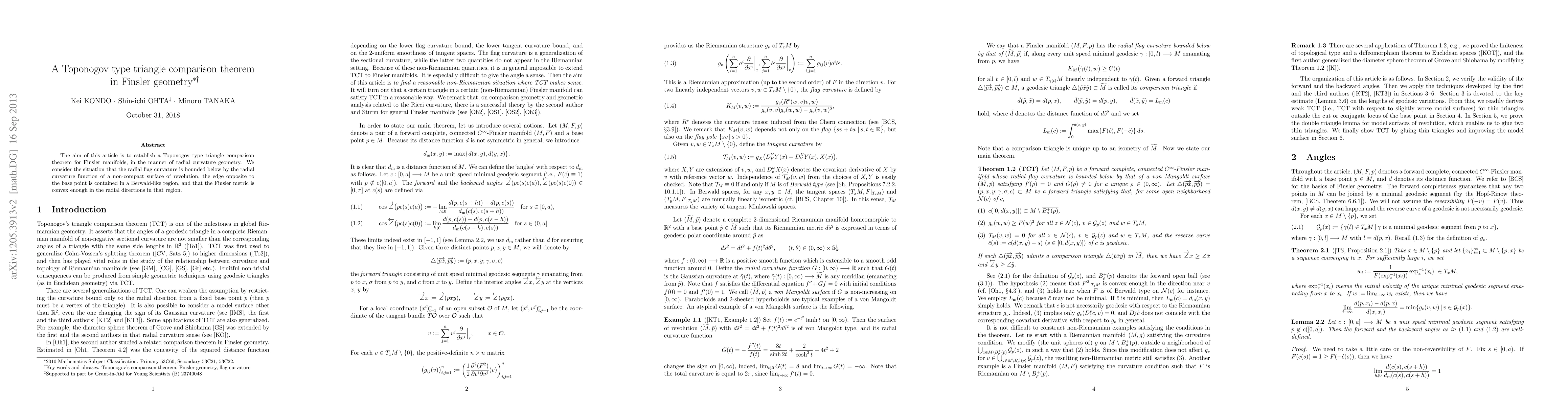The aim of this article is to establish a Toponogov type triangle comparison theorem for Finsler manifolds, in the manner of radial curvature geometry. We consider the situation that the radial flag curvature is bounded below by the radial curvature function of a non-compact surface of revolution, the edge opposite to the base point is contained in a Berwald-like region, and that the Finsler metric is convex enough in the radial directions in that region.
