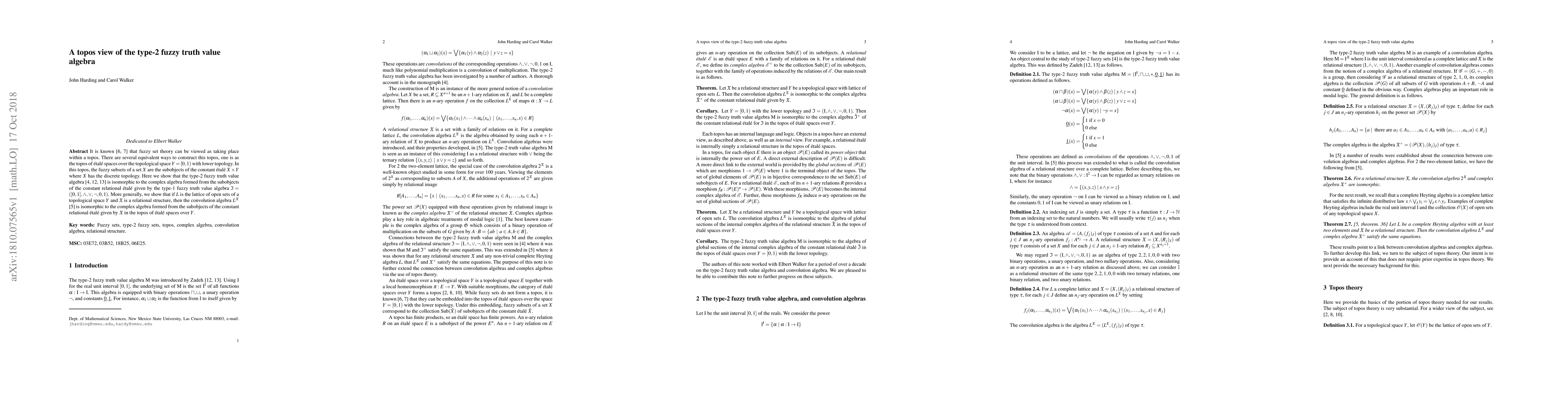 It is known that fuzzy set theory can be viewed as taking place within a topos. There are several equivalent ways to construct this topos, one is as the topos of \'{e}tal\'{e} spaces over the topological space $Y=[0,1)$ with lower topology. In this topos, the fuzzy subsets of a set $X$ are the subobjects of the constant \'{e}tal\'{e} $X\times Y$ where $X$ has the discrete topology. Here we show that the type-2 fuzzy truth value algebra is isomorphic to the complex algebra formed from the subobjects of the constant relational \'{e}tal\'{e} given by the type-1 fuzzy truth value algebra $\mathfrak{I}=([0,1],\wedge,\vee,\neg,0,1)$. More generally, we show that if $L$ is the lattice of open sets of a topological space $Y$ and $\mathfrak{X}$ is a relational structure, then the convolution algebra $L^\mathfrak{X}$ is isomorphic to the complex algebra formed from the subobjects of the constant relational \'{e}tal\'{e} given by $\mathfrak{X}$ in the topos of \'{e}tal\'{e} spaces over $Y$.