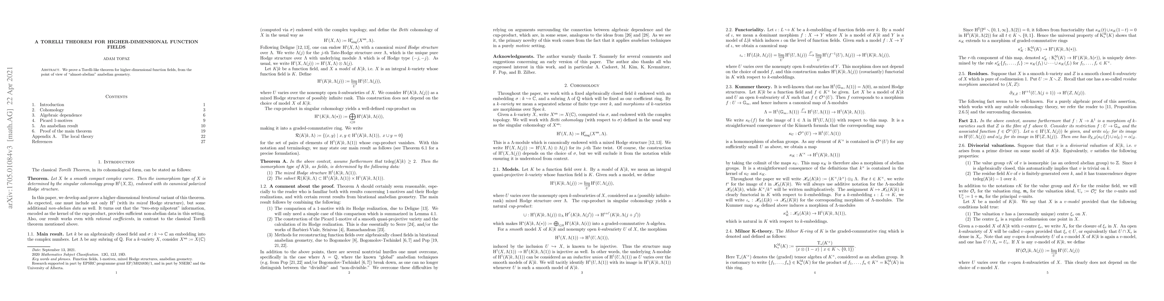 Summary: This paper establishes a Torelli-like theorem for higher-dimensional function fields using the framework of "almost-abelian" anabelian geometry, providing new insights into their structural properties.