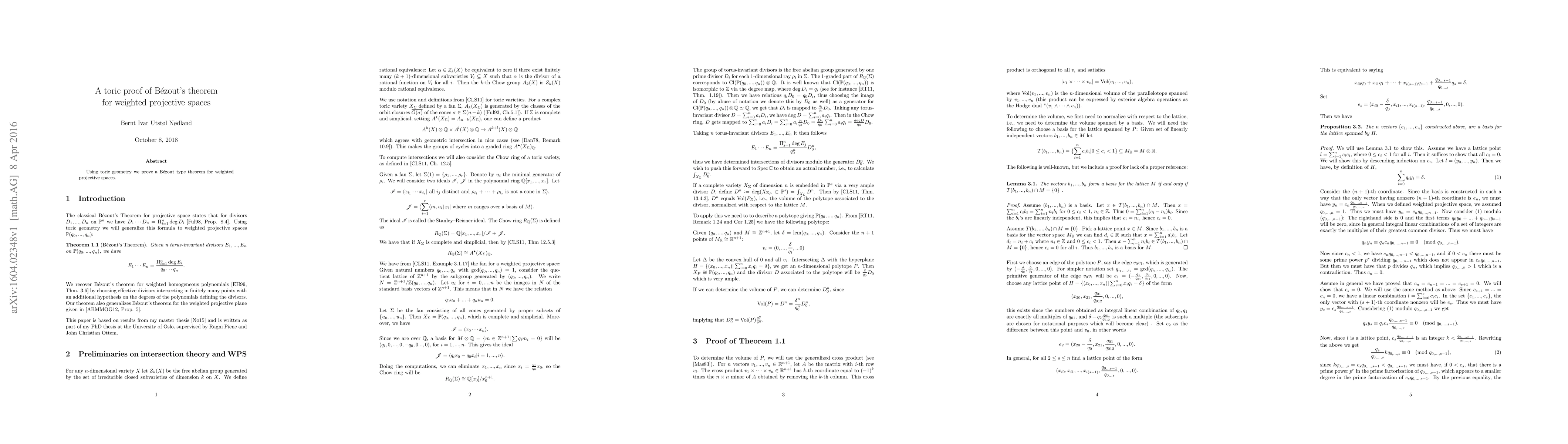 Summary: This paper leverages toric geometry to establish a B\'ezout-like theorem for weighted projective spaces, providing a novel proof method for intersection results in these complex spaces.