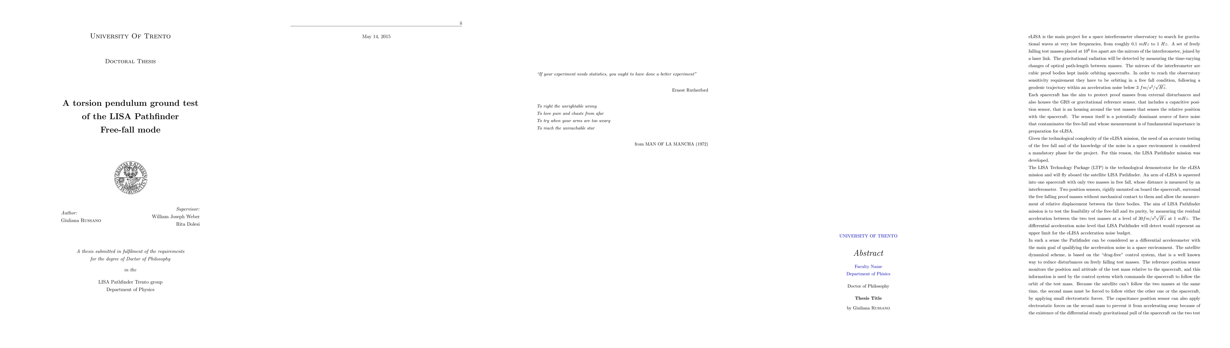 LISA Pathfinder is the technological demonstrator space mission for the future gravitational waves observatory in space eLISA, with the aim of measure the differential acceleration between free-falling test masses orbiting in the same apparatus at a level of 30 fm/s-2Hz-1/2 at 1 mHz. Because the satellite can't follow the two masses at the same time, the second mass must be forced to follow either the other one or the spacecraft. The actuation force applied to compensate this effect introduces a dominant source of force noise in the mission noise budget at frequency near and below the mHz. The free-fall mode actuation control scheme has been designed to suppress this noise source and avoid actuation instabilities: actuation is limited to brief periodic impulses, with test masses in free fall in between two kicks. This actuation-free motion is then analyzed for the remaining sources of acceleration ultra noise. A free-fall mode parallel testing has been successfully implemented on torsion pendulum facility at the University of Trento and the results of the measurement campaign are ready to be shown and discussed. The implementation of the data analysis algorithms to estimate the spectrum of the acceleration of the controlled test mass, and the estimation of system parameters such as the force gradients, stiffness terms, are also part of this work. The free-fall mode has been tested at the level of 2 fNm/Hz-1/2, at the frequencies of 1 mHz, corresponding to an acceleration of about 100 fm /s-2 Hz-1/2. The ground tests have nevertheless allowed to develop and test quantitatively this innovative method of noise reduction due to actuation noise, contributing to its development for the LISA Pathfinder mission.