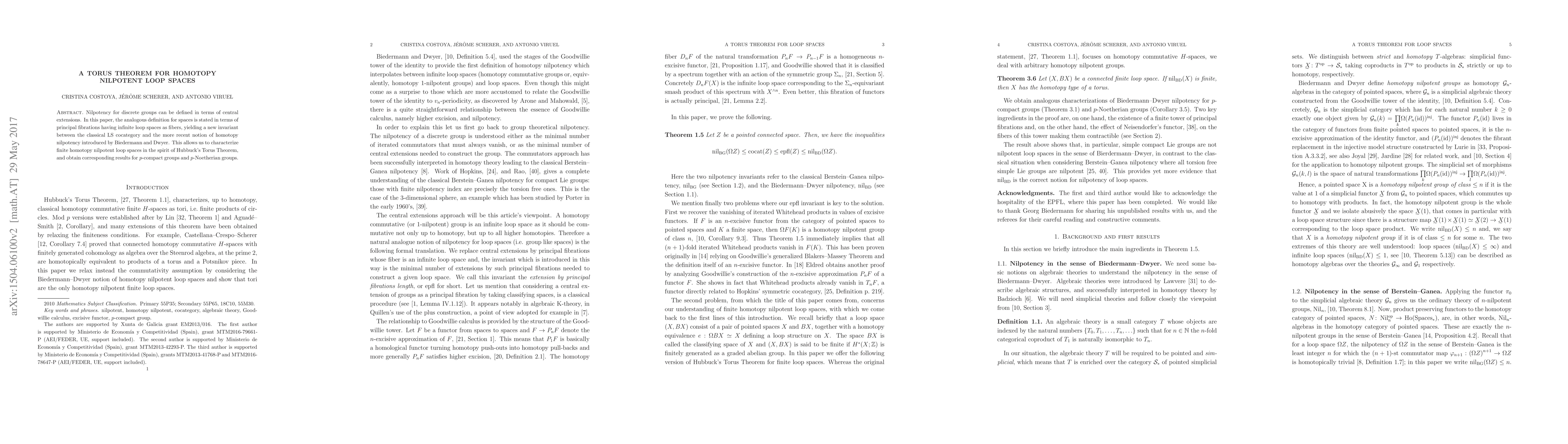 This paper introduces a torus theorem for homotopy nilpotent groups, defining nilpotency in terms of principal fibrations with infinite loop spaces. It compares this new invariant to classical cocategory and recent homotopy nilpotency notions, ultimately characterizing finite homotopy nilpotent loop spaces and extending results to $p$-compact and $p$-Noetherian groups.