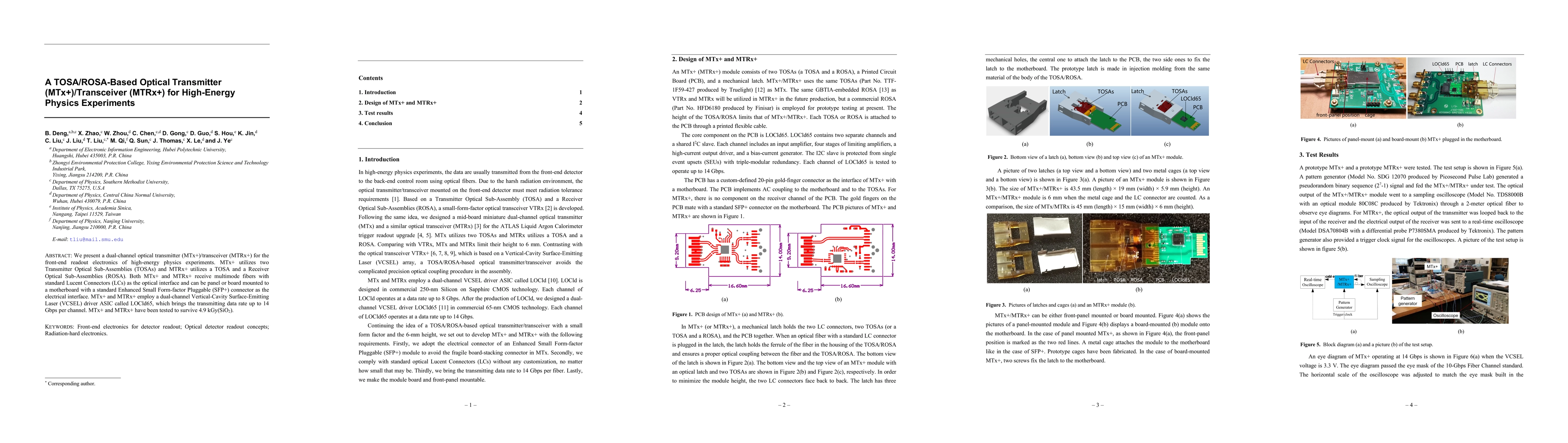 This paper introduces a dual-channel optical transmitter (MTx+) and transceiver (MTRx+) for high-energy physics experiments, utilizing TOSAs and ROSAs, and capable of data rates up to 14 Gbps per channel. Both components are radiation-hardened, surviving up to 4.9 kGy(SiO2).