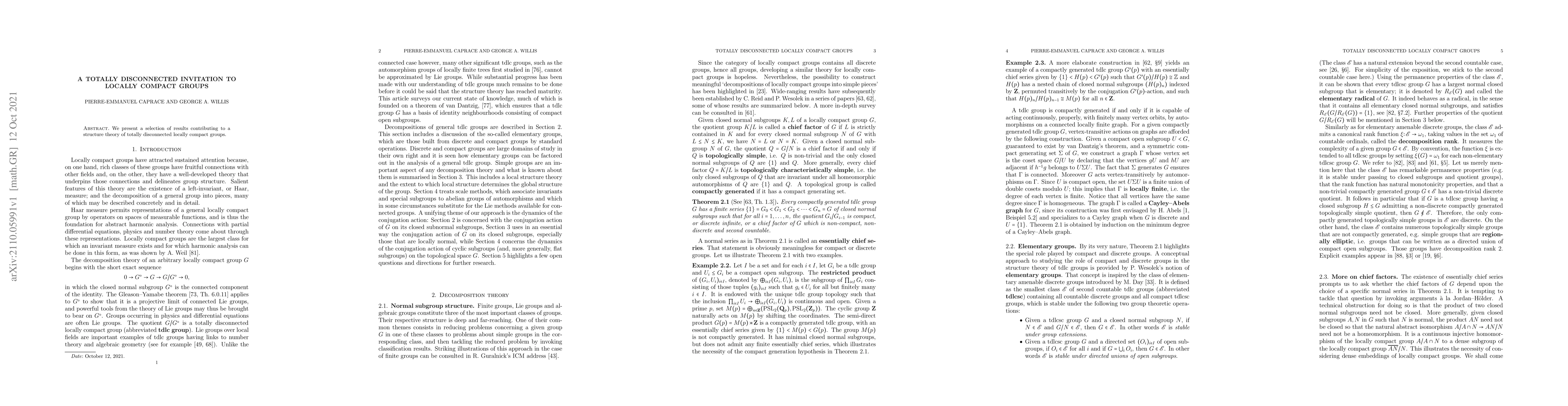 We present a selection of results contributing to a structure theory of totally disconnected locally compact groups.