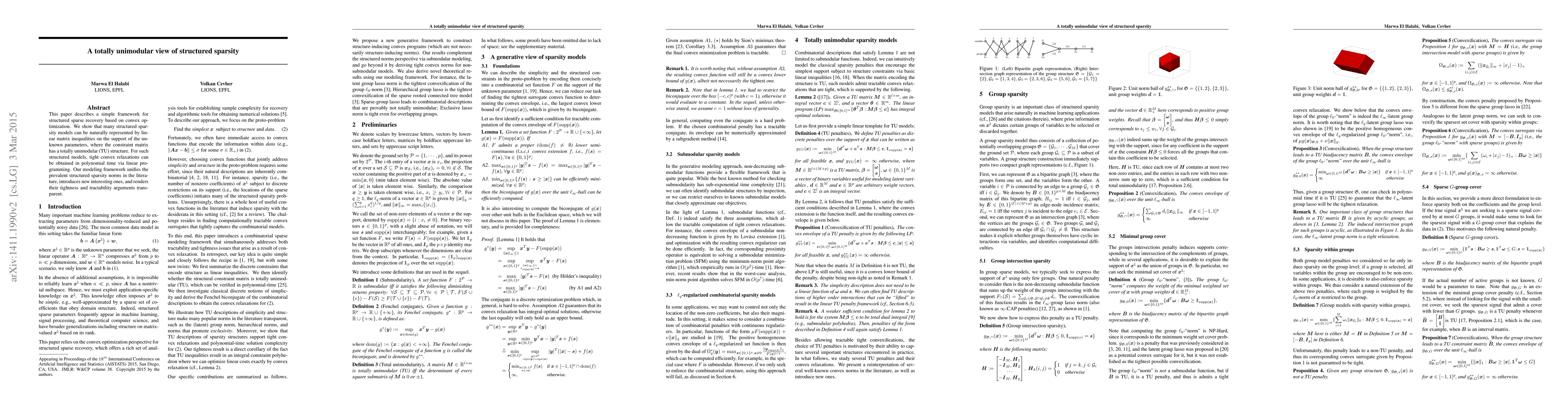 This paper describes a simple framework for structured sparse recovery based on convex optimization. We show that many structured sparsity models can be naturally represented by linear matrix inequalities on the support of the unknown parameters, where the constraint matrix has a totally unimodular (TU) structure. For such structured models, tight convex relaxations can be obtained in polynomial time via linear programming. Our modeling framework unifies the prevalent structured sparsity norms in the literature, introduces new interesting ones, and renders their tightness and tractability arguments transparent.