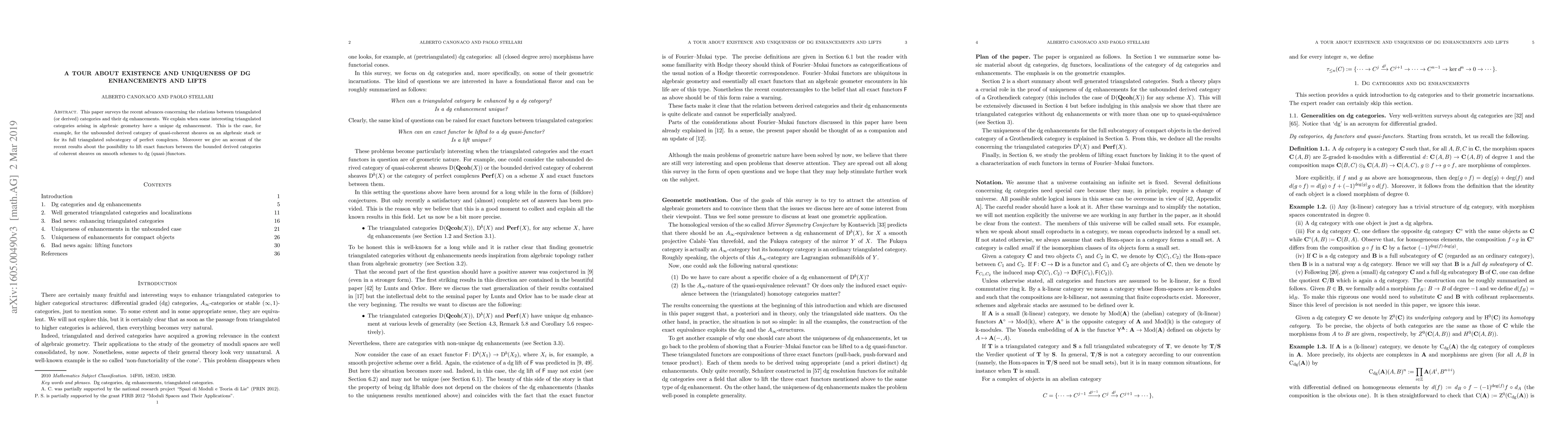 This paper surveys recent advances on the relationships between triangulated categories and their dg enhancements, focusing on when specific triangulated categories in algebraic geometry, such as those of quasi-coherent sheaves on algebraic stacks, have unique dg enhancements. It also discusses the lifting of exact functors between bounded derived categories of coherent sheaves to dg quasi-functors.
