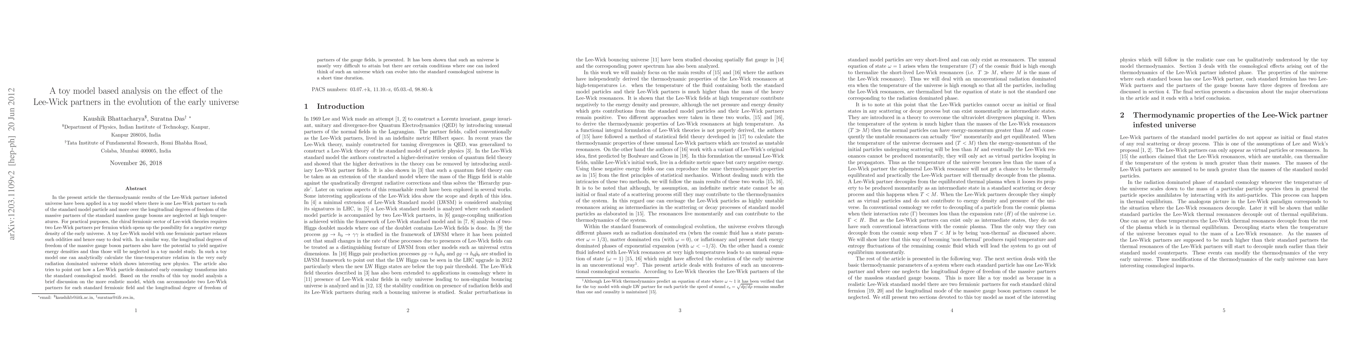 Researchers explored a simplified model of the early universe with Lee-Wick partners, finding that such a universe could exhibit interesting new physics, but is mostly difficult to attain.