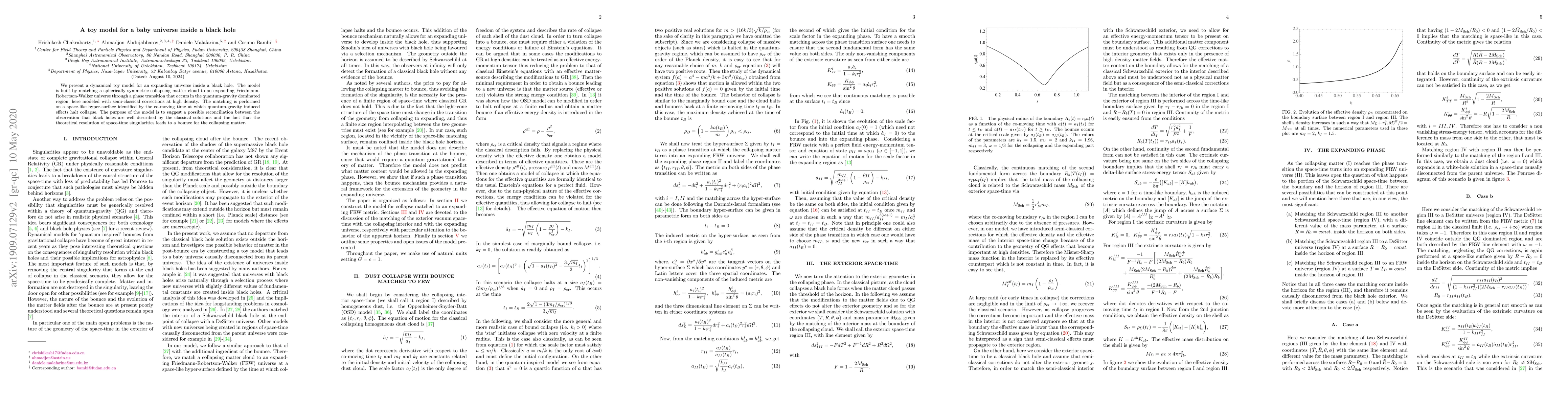 We present a dynamical toy model for an expanding universe inside a black hole. The model is built by matching a spherically symmetric collapsing matter cloud to an expanding Friedmann-Robertson-Walker universe through a phase transition that occurs in the quantum-gravity dominated region, here modeled with semi-classical corrections at high density. The matching is performed on a space-like hyper-surface identified by the co-moving time at which quantum-gravity induced effects halt collapse. The purpose of the model is to suggest a possible reconciliation between the observation that black holes are well described by the classical solutions and the fact that the theoretical resolution of space-time singularities leads to a bounce for the collapsing matter.