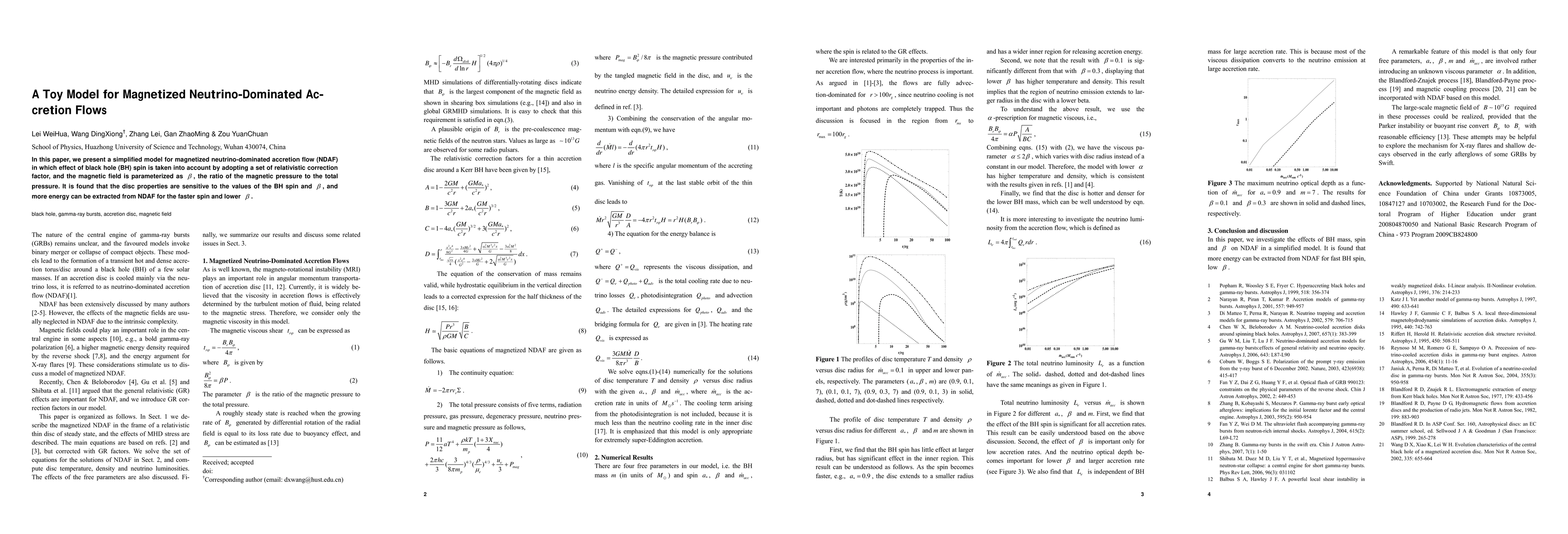 In this paper, we present a simplified model for magnetized neutrino-dominated accretion flow (NDAF) in which effect of black hole (BH) spin is taken into account by adopting a set of relativistic correction factor, and the magnetic field is parameterized as \beta, the ratio of the magnetic pressure to the total pressure. It is found that the disc properties are sensitive to the values of the BH spin and \beta, and more energy can be extracted from NDAF for the faster spin and lower \beta.