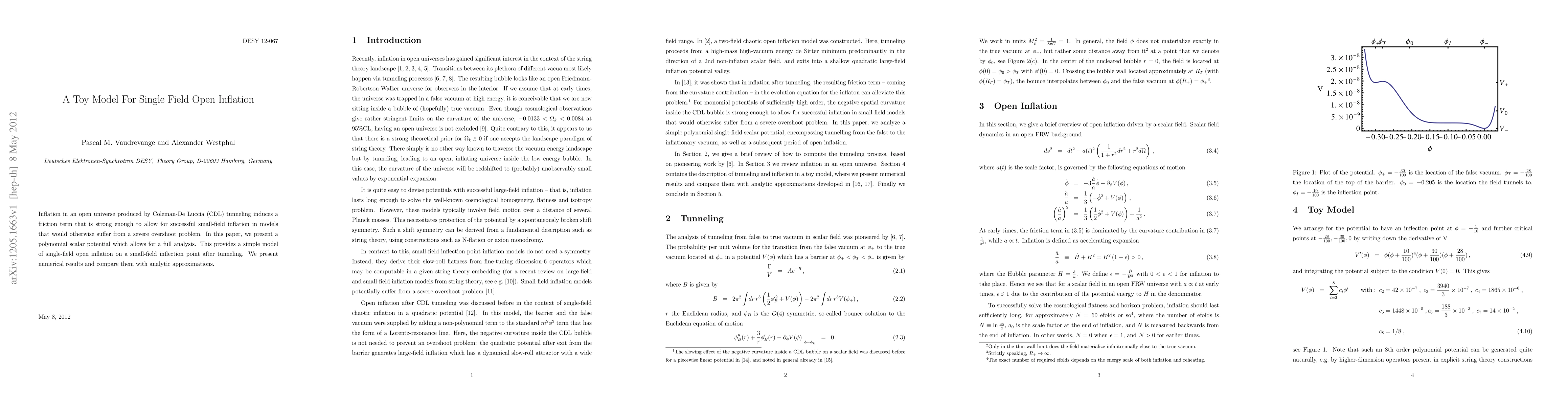 Researchers develop a simple model of single-field open inflation using a polynomial scalar potential, addressing the severe overshoot problem in small-field models. They present numerical results for successful small-field inflation after Coleman-De Luccia tunneling.