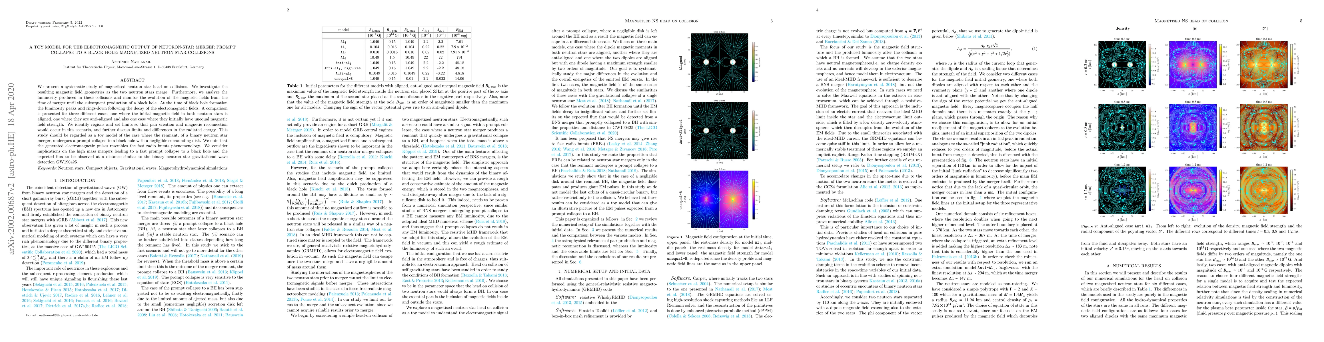 This paper studies magnetized neutron star collisions, focusing on magnetic field evolution and luminosity during merger, leading to black hole formation. It compares scenarios with aligned, anti-aligned, and unequal initial magnetic fields, identifying conditions for pair creation and magnetic reconnection, and relates the electromagnetic output to fast radio bursts.