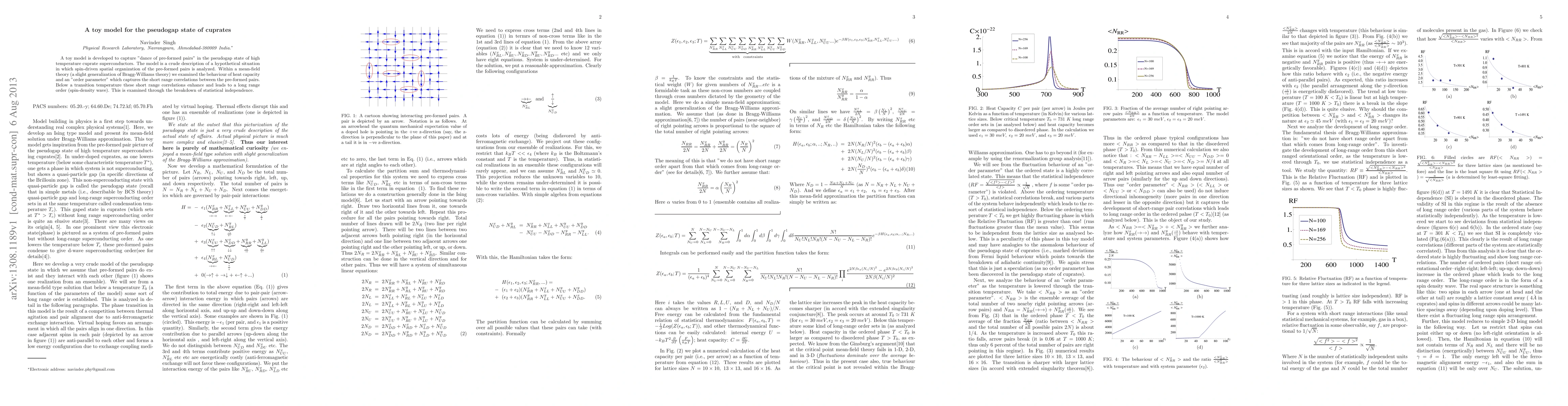 This paper develops a toy model to describe the pseudogap state in high-temperature cuprate superconductors, focusing on the "dance of pre-formed pairs." The model analyzes spin-driven spatial organization and examines heat capacity and an order parameter through mean-field theory, revealing that short-range correlations lead to a spin-density wave below a transition temperature.
