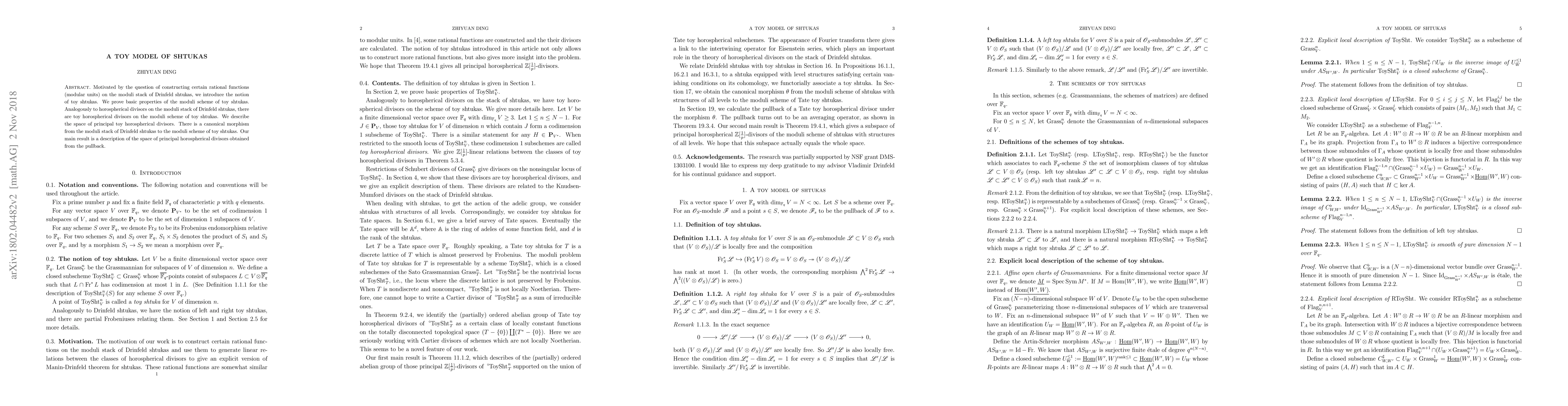 The paper establishes a framework for studying shtukas through a simplified model, introducing concepts like toy shtukas, toy horospherical divisors, and a morphism between moduli stacks.