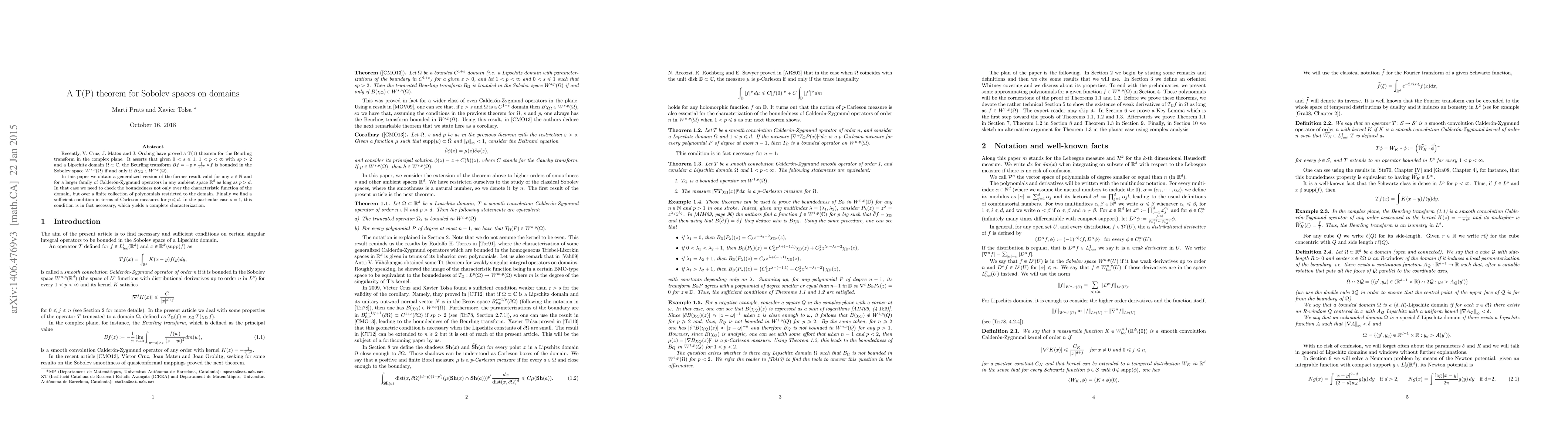 Researchers extend a T(1) theorem for Sobolev spaces on domains to cover various Calderón-Zygmund operators in any ambient space, providing necessary conditions for boundedness in terms of Carleson measures.