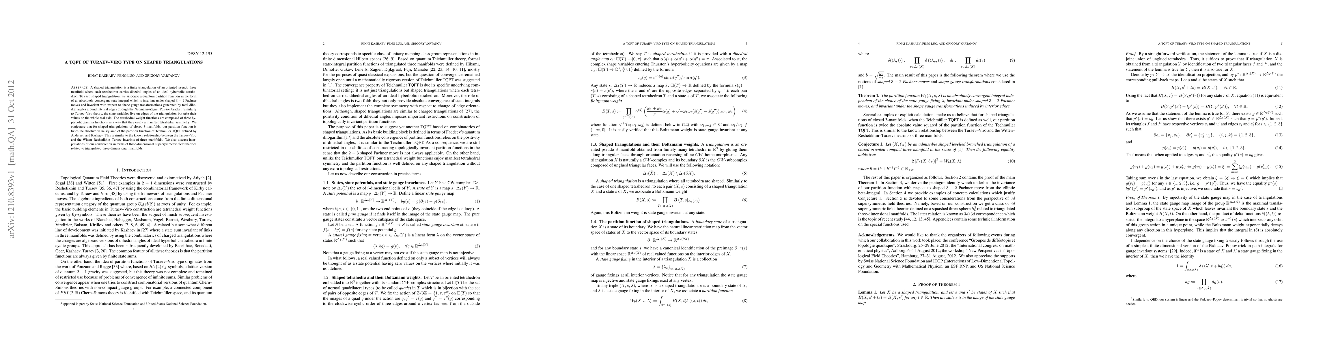 A shaped triangulation is a finite triangulation of an oriented pseudo three manifold where each tetrahedron carries dihedral angles of an ideal hyberbolic tetrahedron. To each shaped triangulation, we associate a quantum partition function in the form of an absolutely convergent state integral which is invariant under shaped 3-2 Pachner moves and invariant with respect to shape gauge transformations generated by total dihedral angles around internal edges through the Neumann-Zagier Poisson bracket. Similarly to Turaev-Viro theory, the state variables live on edges of the triangulation but take their values on the whole real axis. The tetrahedral weight functions are composed of three hyperbolic gamma functions in a way that they enjoy a manifest tetrahedral symmetry. We conjecture that for shaped triangulations of closed 3-manifolds, our partition function is twice the absolute value squared of the partition function of Techm\"uller TQFT defined by Andersen and Kashaev. This is similar to the known relationship between the Turaev-Viro and the Witten-Reshetikhin-Turaev invarints of three manifolds. We also discuss interpretations of our construction in terms of three-dimensional supersymmetric field theories related to triangulated three-dimensional manifolds.