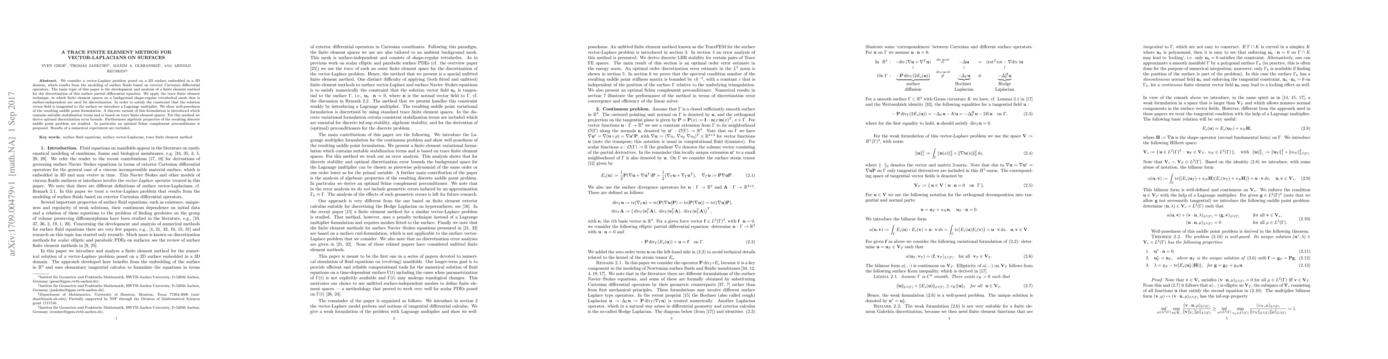 Researchers developed a new finite element method for solving vector-Laplace problems on 2D surfaces embedded in 3D domains, with optimal error bounds and a proposed preconditioner.