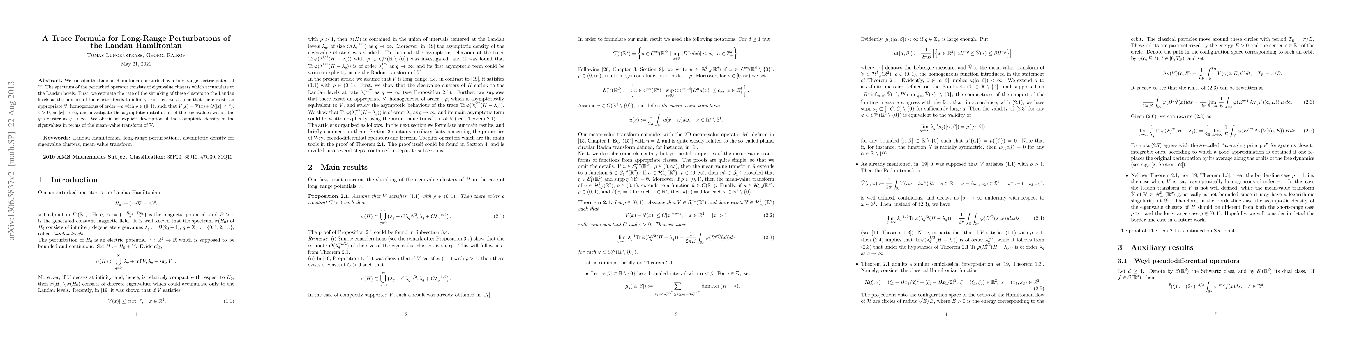 This paper develops a trace formula for the long-range perturbations of the Landau Hamiltonian, estimating the shrinking rate of eigenvalue clusters towards Landau levels as cluster size increases. It also provides an explicit asymptotic density of eigenvalues within clusters, expressed via the mean-value transform of the perturbation potential.