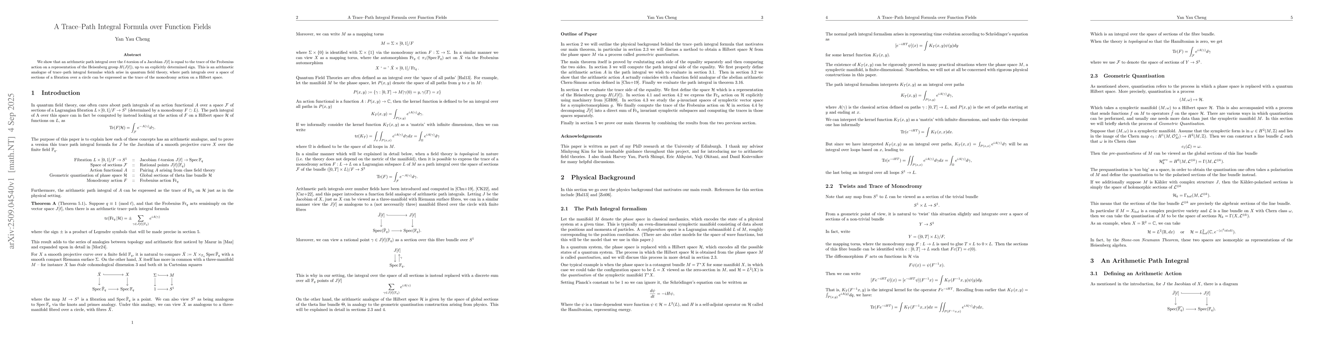 We show that an arithmetic path integral over the $\ell$-torsion of a Jacobian $J[\ell]$ is equal to the trace of the Frobenius action on a representation of the Heisenberg group $H(J[\ell])$, up to an explicitly determined sign. This is an arithmetic analogue of trace--path integral formulae which arise in quantum field theory, where path integrals over a space of sections of a fibration over a circle can be expressed as the trace of the monodromy action on a Hilbert space.