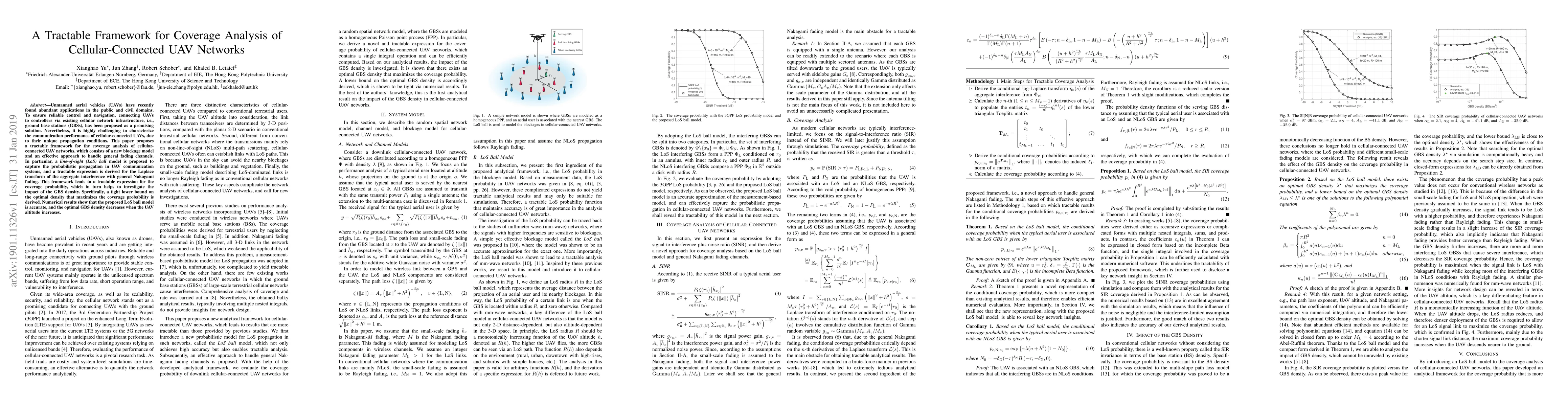 This paper proposes a tractable framework for analyzing the coverage of cellular-connected UAV networks, introducing a line-of-sight ball model and a method for handling general fading channels. The framework provides a tractable expression for coverage probability, revealing that optimal ground base station density decreases with higher UAV altitudes.