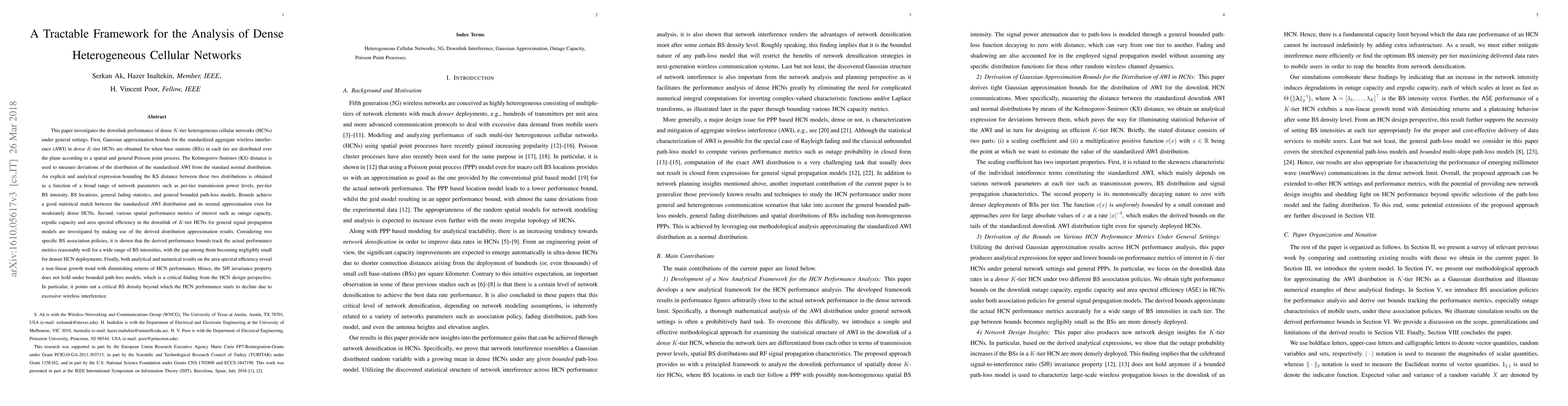 Researchers develop a tractable framework for analyzing dense heterogeneous cellular networks, providing bounds on downlink performance metrics such as outage capacity and area spectral efficiency.